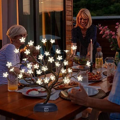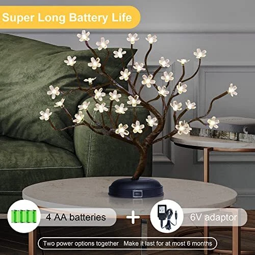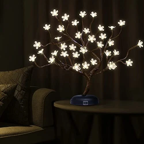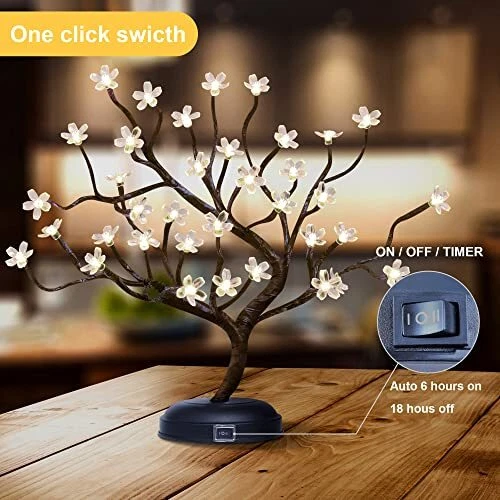 Return Policy Fast Delivery Trusted seller Lighted Cherry Blossom Tree Lamp 18IN Tree Lights with 36 LED, Japanese Cherry Blossom Decor for Indoor and Outdoor, Adapter Plug in/ Battery Powered Tabletop Lamp, UL Listed, Warm White Product Description 【Unique Cherry Blossom Decoration】 This 18-inch tree lamp has 36 clear cherry blossom petals that are just the right amount of brightness to lit up your entire room without being too dazzling or dim. With the hand-wound brown branches, it brings you a romantic and elegant atmosp at night. 【Adjustable Branches to Meet Your DIY Needs】 As the branches are made of soft copper wires, you can bend it into any shape you like, in different holidays with different festival accents, to create your own decorative style. 【Plug-in & Battery Powered】 This lamp can be powered by 4AA battery and 6V adapter at the same time, which both gives it a long life that far exceeds the other average lamps and also provides portability. It can serve as temporary lighting for outdoor weddings, dinners, parties, gardens, whenever you need it. 【One- Timer and Waterproof Design】 This tabletop lamp has an advanced craft, frosted metal base, fully waterproof design, non-slip foot sticker, and just need one- to switch timer function (6 hours on 18 hours off automatically). 【Quality Assurance】 All of our LED tree lights come with a 180-day warranty. And We have the best customer service and quality control team to cover your back. If you have any questions, please feel free to contact us, we will solve your issues within 24 hours. Shipping Returns Payment Shipping Shipping is FREE to all addresses other than APO/PO boxes in the lower 48 states. All our stock ships from US-based warehouses. Shipped via USPS or UPS (depending on location and package weight) Unless stated otherwise, all orders will ship within 24-72 hours of your payment being processed. Check our feedback to see the great reviews of FAST shipping we offer. Returns Seller does not accept returns Payment We currently accept payment via eBay managed payments only. Once payment is cleared, we will dispatch your shipment within 1-3 business days. Please refer to the "Shipping" tab for more information regarding shipping speed to your destination.