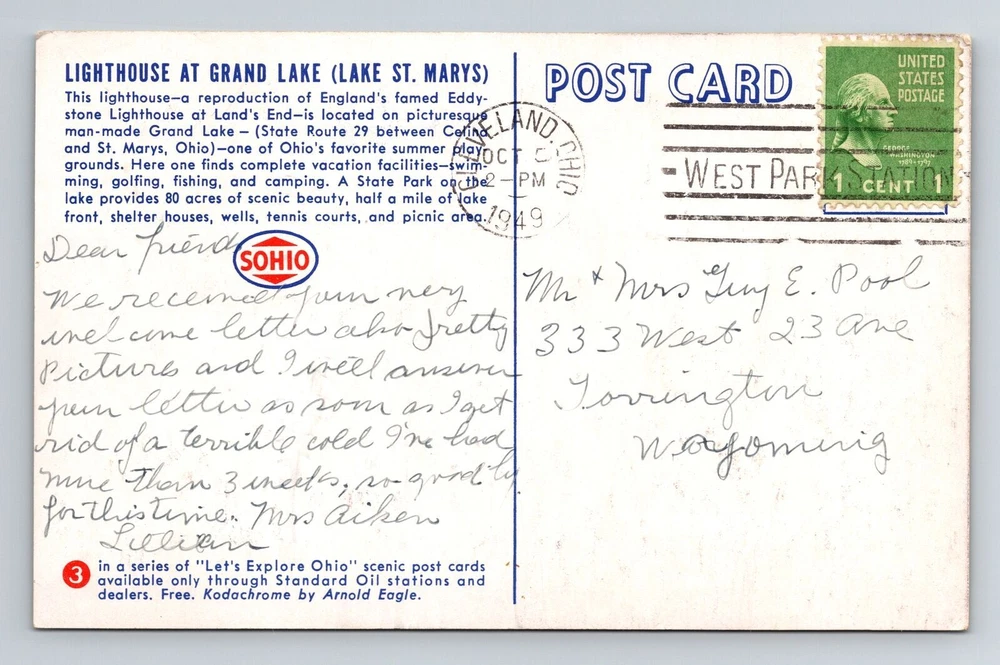 Lighthouse At Grand Lake, Scenic View, Vintage Postcard