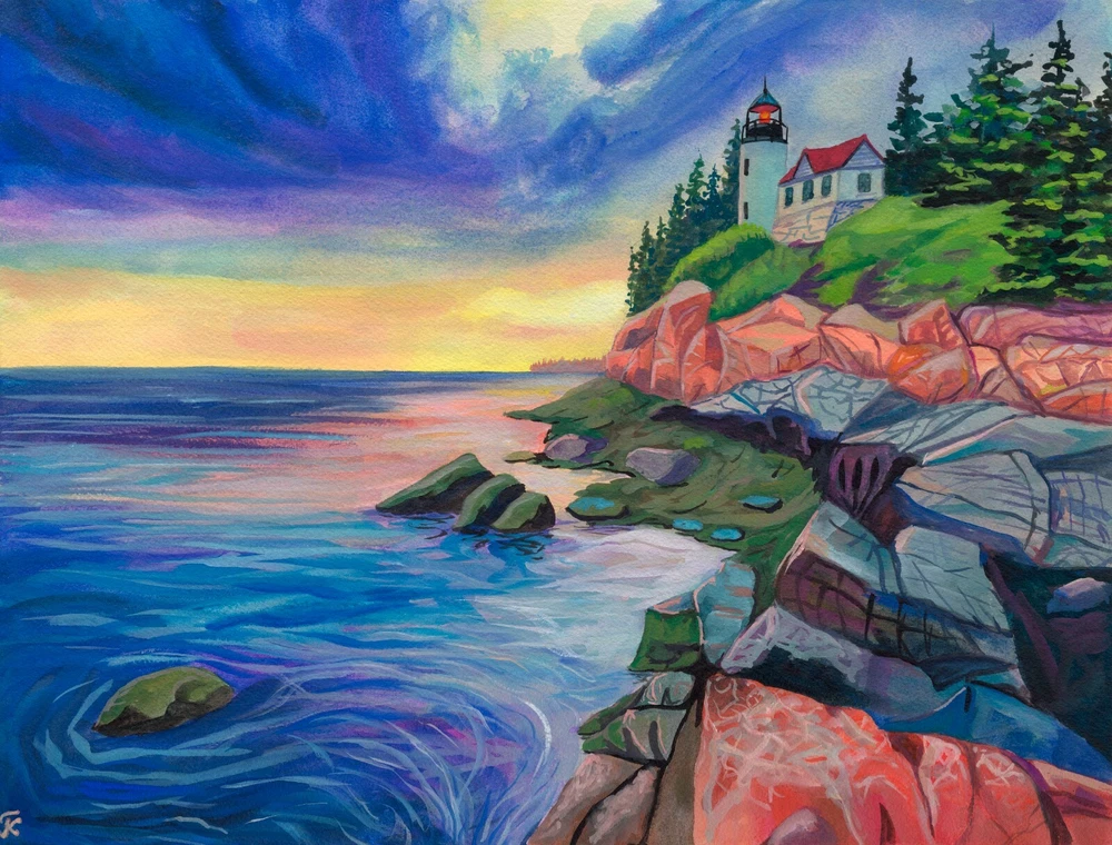 Acadia National Park print made from my original gouache painting. Lighthouse is a symbol of luck and hope. If you will put it on your wall, your dreams come true! I sell good quality giclée PRINTS. Museum-quality posters made on thick and durable matte paper. Each poster is giclée-printed on archival, acid-free paper that yields brilliant prints to brighten up any room. Paper thickness: 10.3 mil (0.26 mm) Paper weight: 5.57 oz/yd² (189 g/m²) Giclée printing quality Opacity: 94% ISO brightness: 104% Blank product sourced from Japan Print sizes: 🔹 8 x 10 inches (20 x 25,4 cm ) 🔹 12 x 16 inches (30,5 x 40,6 cm) 🔹 16 x 20 inches (40,6 x 50,8 cm) ❗️Free shipping ❗️ USA: Print will be shipped from US printing service directly to you. EU: Your order will be shipped from European printing service (Spain or Latvia). UK: Your order will be shipped from Birmingham, UK printing service. Australia: Your order will be shipped from Australian printing service. Canada: Your order will be shipped from Canadian printing service. Prints are shipped rolled in a mailing tube with tracking information shared with you. Painted by Kate Grishakova. I am an international artist from Bratislava, Slovakia. I create vivid, bright paintings in impressionist style. I had many exhibitions in Europe. I aim to make the most positive experience for my customers, please feel free to ask any questions, enquires or concerns! I speak English and Slovak. PLEASE NOTE - Frames are not included. - Depending on monitor settings colors may appear slightly different on screen than on the actual print.