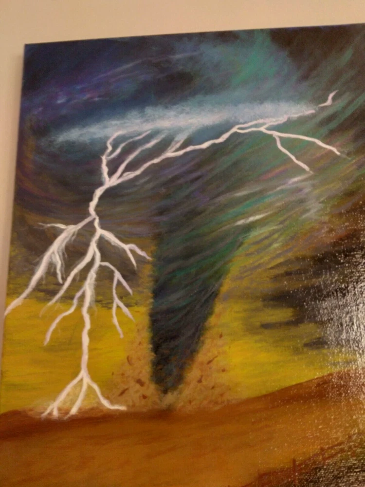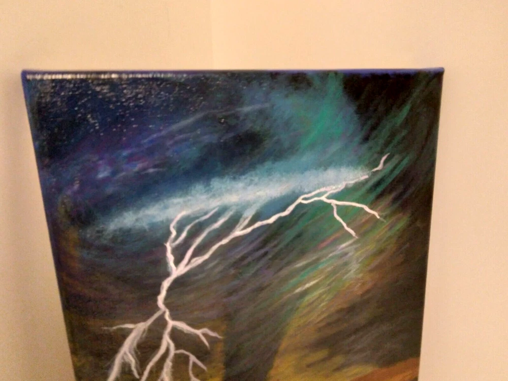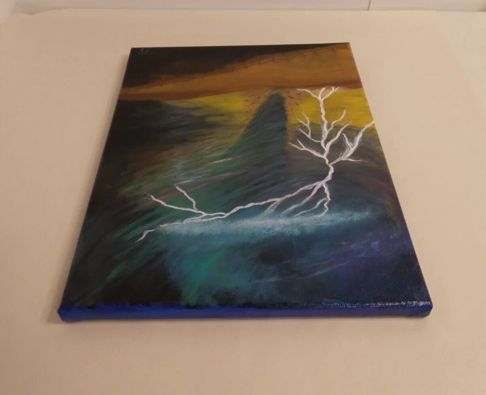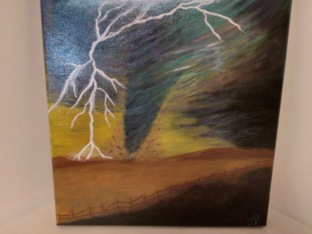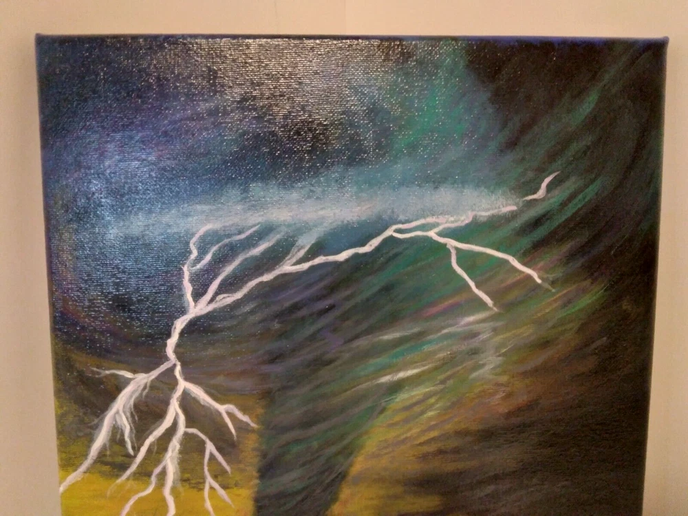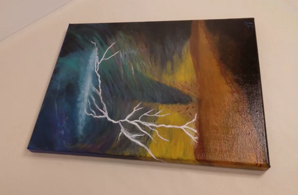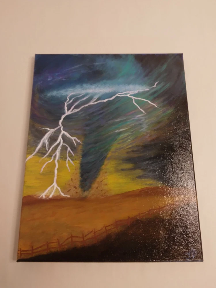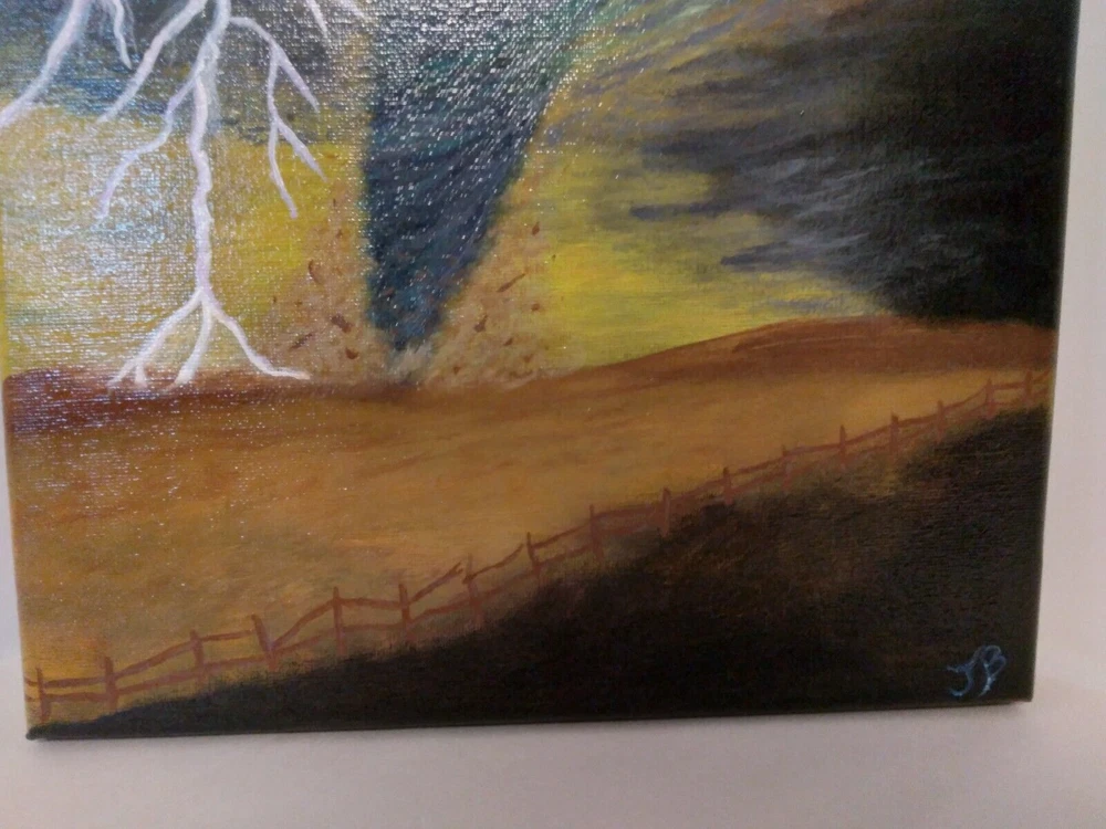 "Lightning Tornado” 11"x 14" Original Acrylic Painting on Framed Stretched Canvas with a beautiful tornado scene. I am the artist of this painting, it was painted in 2024 and I signed it, it was finished with a light glossy varnish. See photos for details and measurements. Fast shipping and carefully packed!