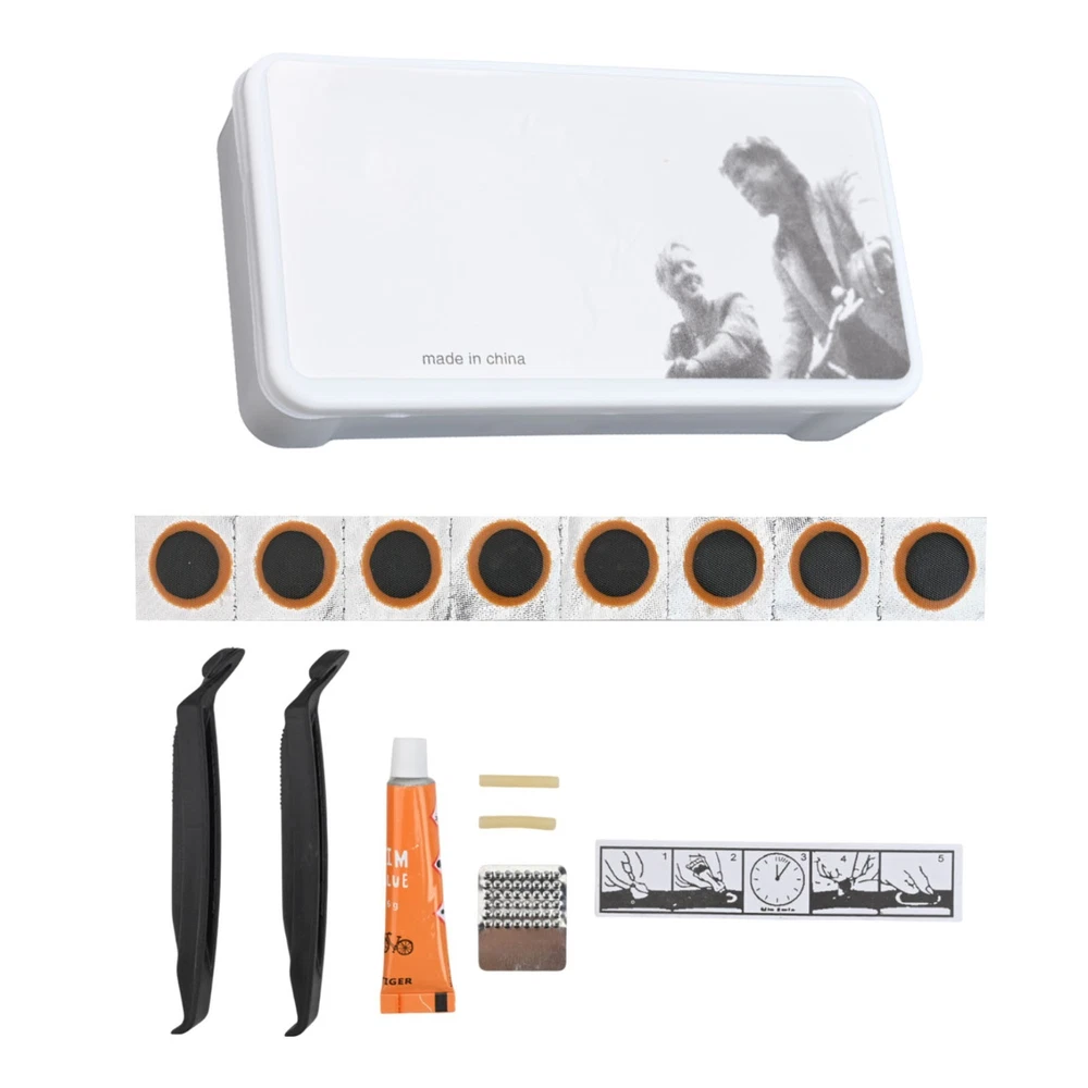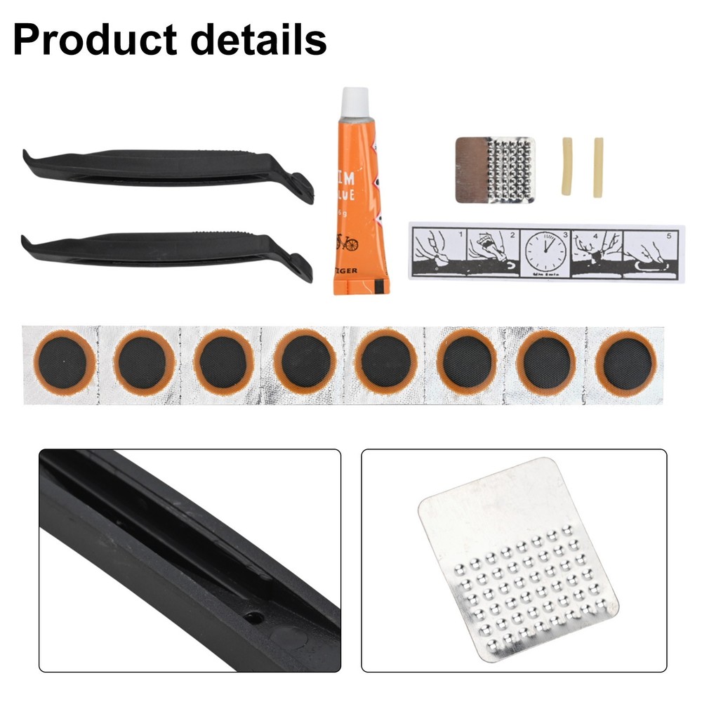 Product Description Features: * Lightweight and ultra-thin: This bicycle tire repair kit is designed to be small in size and lightweight, making it extremely easy to carry with you during your rides. It won't add any extra weight to your gear. * Convenient patches: The patches included in this kit can directly to the tire tube without the need for any additional glue. It's a hassle-free and quick solution for repairing damaged tires. * Versatile application: This repair kit is not only suitable for repairing bike tires, but it can also be used for repairing inner tubes, airbeds, dinghies, air mattresses, paddling pools, and more. It's a multipurpose tool for various outdoor activities. * Perfect for different types of bikes: Whether you have a road bike, a bike, or a fixed bike, this repair kit is compatible with all types of bikes. It's a must-have for every cyclist. Specifications: *Product Name:Bicycle Tire Repair Kits Tools Cycling Inner Tube Patching Tyre Filler *Material:Rubber *Size:11.5 * 6 * 2 (cm) *Color:As shown in the figure Package Content: 2 plastic crowbars, 1 grinding film, 1 tube of glue, 8 tire films, 1 plastic box, and a detailed manual. Note: 1. The real color of the item may be slightly different from the pictures shown on website caused by many factors such as brightness of your monitor and light brightness. 2. Please allow slight manual measurement deviation for the data. Payment Payment must be completed within 5 days. If you have any problems about payment, please contact us via ebay message. Delivery details We only ship to confirmed ebay Order addresses. Please comfirm that your Order address is in line with your shipping address. Please kindly note that the c ombined shipping is not provided because the shipping fee is calculated by weight. Also, the each additional item means exactly the the same color and size. It takes about 7 -15 working days to US; about 10-30 working days to other countries. Transit time may be a little delayed because of the bad weather and customs inspection . If you do not receive your item within 30 working days since payment finished, please contact us immediately for further assistance. Contact us We strive for 100% customer satisfaction! Positive Feedback is very important to us. If you have any questions, p lease feel free to contact us via "Ask seller a question" . We will reply your email within 24 working hours.