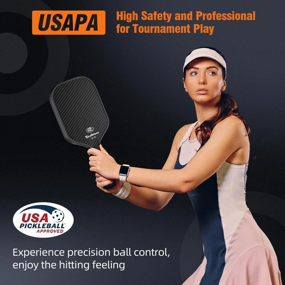 Versatile Lightweight Carbon Fiber Pickleball Paddle - Ideal for Novices & Pros ‹ › ‹ › ‹ › ‹ › ‹ › ‹ › ‹ › ‹ › ‹ › ‹ › Versatile Lightweight Carbon Fiber Pickleball Paddle Ideal for Novices & Pros Carbon Fiber Pickleball Paddles High-performance Carbon Fiber Surface (CFS) with a 16mm Honeycomb Core. Exceptional balance of strength and flexibility. Reinforced edge protection enhances durability, guarding against damage. Shock-Absorbing & Large Sweet Spot Advanced shock-absorbing materials maximize comfort, reducing vibrations. Minimizes strain on wrists and arms during gameplay. Expanded sweet spot for consistent power and accuracy, reducing mishits. Lightweight for Effortless Control & Speed Size: L16.54" x W7.48" x H0.7"; Weight: 7.41-7.76 oz. Adopts lightweight carbon fiber material for minimized weight without compromising strength. Reduces arm fatigue for faster swings and precise shot control. Ergonomic Extended Grip for Comfort Non-slip Grip: Soft PU material increases hand friction and comfort. Sweat Absorption: Breathable holes keep hands dry while playing. Extended Grip: Better two-handed grip and increased hitting range. Foam Cushioning Layer for vibration reduction and maximum comfort. Versatile Performance for All Levels Designed to meet the needs of players from all skill levels. Perfect for friendly games or competitive tournaments. Enjoy both power hits and controlled shots with this all-around paddle. Why Choose Our Carbon Fiber Pickleball Paddle? This versatile paddle is crafted for those who are passionate about pickleball, combining materials with ergonomic design. Whether you are a novice seeking to improve your skills or a pro wanting to enhance your play, this paddle will elevate your game experience. Its shock absorption, lightweight construction, and comfortable grip ensure you can play longer without discomfort while maximizing your performance. Don’t settle for less—invest in your game with our Carbon Fiber Pickleball Paddle today! Shipping Free & Fast Shipping - We offer free shipping to most of the USA with a normal delivery time of 3-7 days. However, due to the current situation, additional delivery time (up to 3 weeks) may be required for some items. Alternative Carriers - We may use alternative carriers (e.g. USPS, FedEx, UPS, etc.) to ensure your package arrives safely and on time. Due to the use of multiple carriers, we are unable to provide a tracking number automatically. Handling Time - Orders are processed and shipped within 1-2 business days of receiving cleared payment. Shipping Restrictions - Shipping to Alaska, Hawaii, Puerto Rico, Guam, and other US territories may incur shipping charges or delivery restrictions. Please contact us before ordering, or your order can be refunded/cancelled. State Restrictions - There may be restrictions based on your state of purchase. For example, certain items may not be shipped to California due to state regulations. Contact for Tracking Updates - If you require tracking updates or have any concerns about the delivery of your order, please feel free to contact us, and we will be happy to assist you. Return 30-Day Hassle-Free Returns - We want you to be completely satisfied with your purchase. If you are not, you can return the item within 30 days of receiving it for a full refund or exchange. Easy Return Process - To start a return, simply contact us and we will provide you with a prepaid return shipping label and detailed instructions. Restocking Fee - There are no restocking fees for returns. However, the buyer is responsible for return shipping costs if the return is not due to a seller's error. Refund Processing Time - Refunds will be processed within 5 business days of receiving the returned item in its condition. Payment We accept all major credit cards, PayPal, and Apple Pay for your convenience. Your payment information is secure and encrypted to ensure a safe and seamless transaction. Please complete your payment within 3 days of purchase to avoid any delays in shipping. Feedback Your feedback is extremely important to us. We strive to provide the best products and customer service possible. If you are satisfied with your purchase, please take a moment to leave us a positive review. If you have any concerns or issues with your order, please contact us before leaving negative feedback. We are committed to resolving any problems and ensuring your satisfaction. Contact Us If you have any questions or concerns, please feel free to out to our customer support team. You can contact us through the eBay messaging system. We are available Monday to Friday, 9:00 am to 5:00 pm EST, and we will do our best to respond to your inquiry within 24 hours. Buy it now and enjoy a pleasant shopping experience!