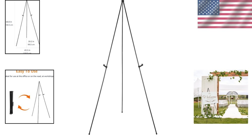 Lightweight Portable Display Easel - Instant Setup, Collapsible, Supports 5 lbs ‹ › ‹ › ‹ › ‹ › ‹ › ‹ › ‹ › ‹ › Lightweight Portable Display Easel Experience the ultimate convenience with our Lightweight Portable Display Easel, designed for effortless setup and enhanced visibility, making it an essential accessory for both professional and personal use. Key Features: Durable Construction: Crafted from high-quality metal and plastic, this tabletop easel robustly supports items up to 5 pounds, perfect for showcasing lightweight posters or signage. Instant Setup: Set up your display in seconds without the need for additional tools—ideal for quick transitions during workshops, conferences, or business meetings. Portable and Lightweight: Designed for easy transport and storage, so you can take your creative displays on the go without hassle. Adjustable Visibility: The innovative plastic clip allows for easy height adjustments, simply unclip and slide the display holders to find the perfect position for maximum impact. Protective Design: Non-slip rubber feet ensure stability while protecting surfaces from scratches and marks. Dimensions: 39.17"D x 43.5"W x 60.83"H, offering ample space for your presentations. Benefits: Seamless installation enhances productivity during events Highly portable design suited for travel and storage Accommodates a variety of lightweight displays with professional flair Height adjustable feature for tailored presentation experiences Safe for use on different surfaces, adding to its versatility Why Choose Our Lightweight Portable Display Easel? Transform the way you present with our Lightweight Portable Display Easel. From office settings to professional conferences, this easel is more than just a display tool—it's a gateway to captivating presentations. With an unparalleled combination of durability, portability, and functionality, it ensures your message stands out, no matter the venue. Elevate your display game today and enjoy the ease of instant setup—order your Lightweight Portable Display Easel now! Shipping Free & Fast Shipping - We offer free shipping to most of the USA with a normal delivery time of 3-7 days. However, due to the current situation, additional delivery time (up to 3 weeks) may be required for some items. Alternative Carriers - We may use alternative carriers (e.g. USPS, FedEx, UPS, etc.) to ensure your package arrives safely and on time. Due to the use of multiple carriers, we are unable to provide a tracking number automatically. Handling Time - Orders are processed and shipped within 1-2 business days of receiving cleared payment. Shipping Restrictions - Shipping to Alaska, Hawaii, Puerto Rico, Guam, and other US territories may incur shipping charges or delivery restrictions. Please contact us before ordering, or your order can be refunded/cancelled. State Restrictions - There may be restrictions based on your state of purchase. For example, certain items may not be shipped to California due to state regulations. Contact for Tracking Updates - If you require tracking updates or have any concerns about the delivery of your order, please feel free to contact us, and we will be happy to assist you. Return 30-Day Hassle-Free Returns - We want you to be completely satisfied with your purchase. If you are not, you can return the item within 30 days of receiving it for a full refund or exchange. Easy Return Process - To start a return, simply contact us and we will provide you with a prepaid return shipping label and detailed instructions. Restocking Fee - There are no restocking fees for returns. However, the buyer is responsible for return shipping costs if the return is not due to a seller's error. Refund Processing Time - Refunds will be processed within 5 business days of receiving the returned item in its condition. Payment We accept all major credit cards, PayPal, and Apple Pay for your convenience. Your payment information is secure and encrypted to ensure a safe and seamless transaction. Please complete your payment within 3 days of purchase to avoid any delays in shipping. Feedback Your feedback is extremely important to us. We strive to provide the best products and customer service possible. If you are satisfied with your purchase, please take a moment to leave us a positive review. If you have any concerns or issues with your order, please contact us before leaving negative feedback. We are committed to resolving any problems and ensuring your satisfaction. Contact Us If you have any questions or concerns, please feel free to out to our customer support team. You can contact us through the eBay messaging system. We are available Monday to Friday, 9:00 am to 5:00 pm EST, and we will do our best to respond to your inquiry within 24 hours. Buy it now and enjoy a pleasant shopping experience! Suitable for Photo Size: Easel Display Stand Item Weight: 1.09 Kilograms Unit Quantity: 1 Features: Adjustable,Durable,Easy Installation,Lightweight,Collapsible,Portable,Non-slip,Tripod Base Type: Display Easel Item Height: 60.83 Inches Item Width: Easel Display Stand Item Length: Easel Display Stand Material: Metal Size: Large Color: Black Mounting: Free Standing Department: Adults