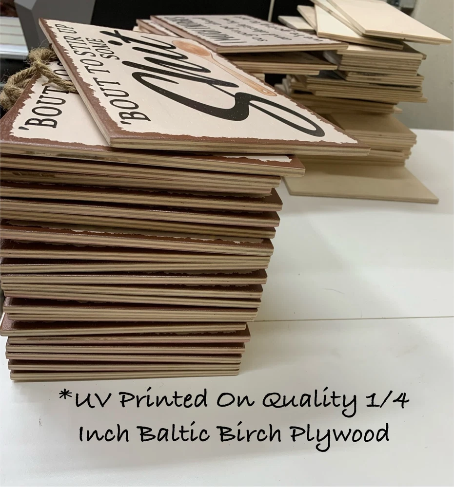 Welcome! We are now UV printing our designs apposed to hand stenciling! So Exciting!! *By Placing your order you agree to have read everything below *Sign ONLY, No photo props come with your purchase. * Professionally printed directly to the wood. These signs will not peel, fade or crack like others that have been made with vinyl. *The back of the sign is raw unfinished wood. *This High Quality UV printing ensures vibrant colors and long lasting durability, making it a practical and aesthetically pleasing addition for your home, office or gift etc... *These images are watermarked. Pictures are property of North Fork Mercantile. *Make sure your Ebay account information and address are up to date. *Please read all shop policies before placing your order. *Sign measures approximately 8x8x1/4 inches. (dimensions do not include rope hanger) *Sign is made from quality birch wood. Back of sign is sanded. *Because this sign is handmade, no two will look exactly alike because of natural flaws in the wood (not many), making your sign unique! *Has a jute rope hanger stapled to the back. Very cute statement piece! *Recommended best use under covered area. For outside hanging, we recommend spar urethane to help your sign last longer in the weather. *Light weight birch wood makes it easy to hang with a thumbtack. *Thank You For Stopping in! Any questions please send us a message! When you buy from us you are supporting a small family business not an Amazon, Big Box or Made in China store.