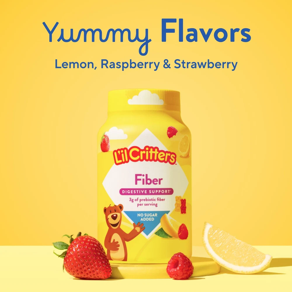 L’il Critters Fiber Daily Gummy Supplement 90 Count (Pack of 1), Multi Color Product Details Each serving of Children’s supplement contains 3 grams of Fiber Gummy bear fiber supplements come in delicious berry and lemon flavors Contains no high-fructose corn syrup, no synthetic (FD&C) dyes, no dairy and no gluten Daily serving size for L’il Critters Fiber supplement is 2 gummies a day for ages 2 and up L’il Critters Gummy Fiber Daily Supplements, from the makers of Vitafusion, Gummy Vitamin Expert, makes getting essential fiber for kids a fun part of the day! Supports digestive health 2 fiber gummies contain as much fiber as 4 prunes L’il Critters Fiber, is fortified with 3 grams of fiber in each serving, to help support your little one’s digestive health!* Each 2-gummy serving has as much fiber as 4 prunes! And these gummies are infused with delicious fruit flavors, making it fun and easy to help support your child’s digestive health.* L’il Critters Fiber supplements have the flavors and fun kids love without the extras you don’t want – No high-fructose corn syrup, No synthetic (FD&C) dyes, No dairy and No gluten.