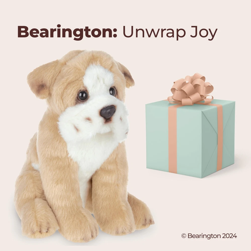 You will love the fine detail award winning uses to bring Lil' Tug, the Bulldog, to life. Hand crafted using the most luxurious, soft plush and with hand airbrushed detail, this Bulldog is perfect for everyone from the collector to a special child in your life. Soft and huggable, Lil' Tug will make the perfect companion. Founded in 1997, Bearington is the proud recipient of more distinguished design awards than any other teddy bear company. Over the years, Bearington has received more than 100 industry design awards and nominations which include: 1 Canadian Collectible of the Year Award, 2 NALED Plush of the Year Nominations, 2 CIB Collector’s Choice Awards, and several TOBY Industry Choice Awards, TOBY Public Choice Awards, and Golden Teddy Awards and Nominations. MEET LIL' TUG THE BULLDOG: This 6.5-inch Bulldog plush is a cuddly stuffed dog your child will adore. Its fluffy and cute design makes it the perfect playmate for babies and kids. This adorable dog plush is every little one's dream companion. CUDDLY: Experience our Bulldog stuffed animal, a premium plush puppy packed with sheer craftsmanship. Its soft fur radiates a familiar warmth, inviting hugs and cuddles. Excellently crafted and ever so endearing, our bulldog plush embodies an adorable playmate, enticing both tenderness and joy. SPECIAL GIFT: Our American bulldog stuffed animal is a delightful childhood companion. Meticulously crafted, the stuffed Bulldog captures lifelike details, making it an enduring object of affection. An ideal gift to be cherished for years, the English Bulldog plush epitomizes love and companionship. BEARINGTON QUALITY: Bearington is synonymous with global excellence in plush toys. Our renowned brand is celebrated for opulent fabrics, unparalleled craftsmanship, and uniquely designed stuffed puppy and dog plushies. Elevate festivities with Bearington's holiday stuffed animals, embodying custom luxury and utmost quality. AWARD-WINNING TOYS: Bearington's legacy spans 25 years of crafting award-winning stuffed toys. Our collection ranges from timeless teddy bears to lifelike dog plushies, feline companions, and holiday stuffed animals. For every age, our creations bring joy and comfort.