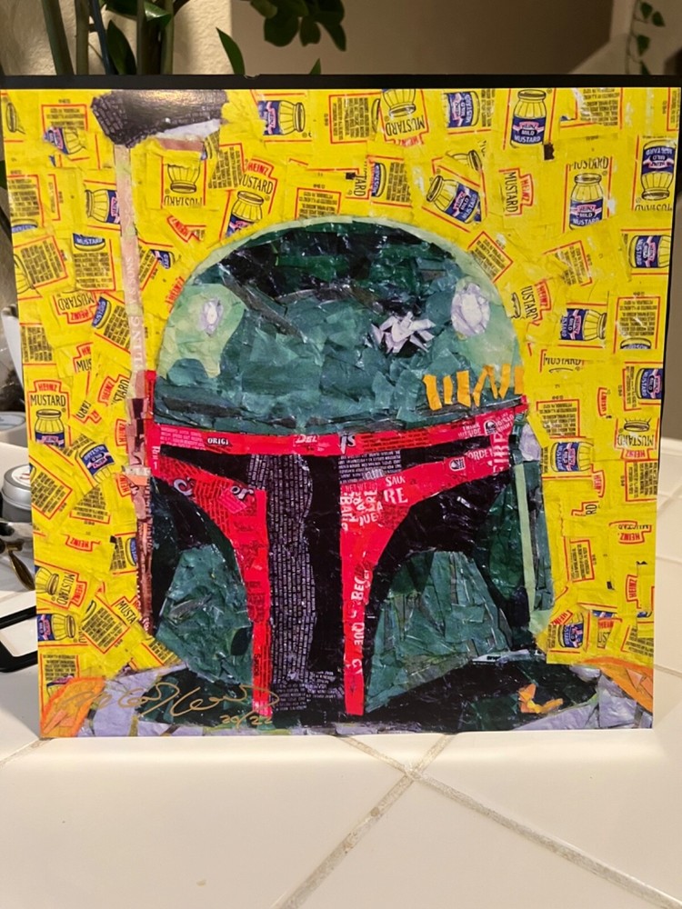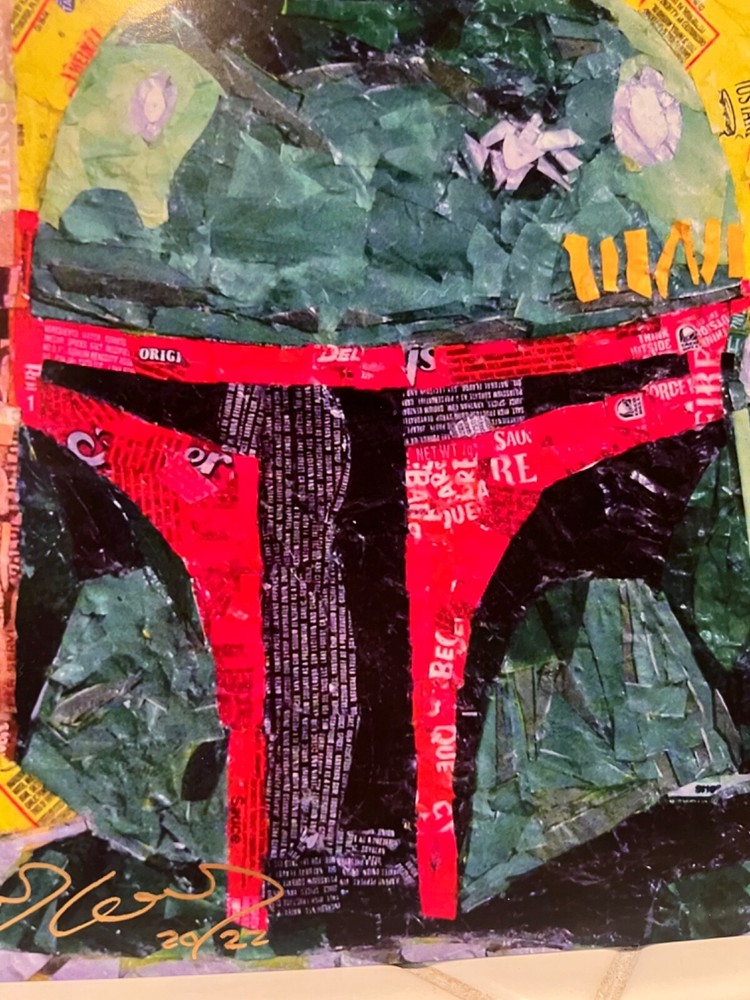 Introducing a unique and limited edition abstract art print featuring the iconic Star Wars character, Boba Fett. This artwork was created by renowned artist, Michael Leighton Coffey, and is signed by the artist himself. It is perfect for fans of the Star Wars franchise and collectors of unique and limited edition art prints. Comes with pocket size print as well