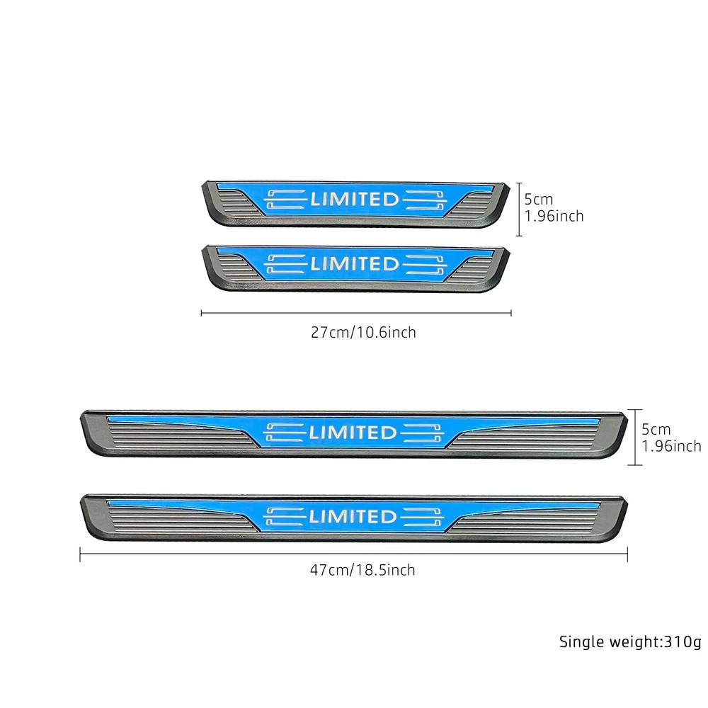 Store Categories Store Categories Other Limited Trim Door Scuff Sill Cover Panel Step Protector Accessories for Ram 2500 Product Description Note! This is universal fitment; please check the size before ordering! Product Specifications Auto Door Sill Plate Protectors Blue Mirror surfacestainless steel Front/Rear Door Sill Scuff Plate Guard, Welcome Pedal Protector CoverVehicle Fitment Condition: Brand New Material: Stainless Steel & ABS Plastic Compatible Models: Fits 2014-2024 Ram 2500 Models Features: Scratch-resistant, corrosion-resistant, Stylish Look, easy installation Color: Blue Type: Door Sill Protector / Threshold Cover / Door Sill Cover / Panel Step Protector Package Includes: 4-piece set (front and rear door sill covers) Installation: Adhesive backing, no drilling required Product Size: Long Size 18 3/4" x 1 7/8" x 1/4"h; Short Size 10 5/8" x 1 7/8" x 1/4"h What’s in the Box 2 front door sill covers 2 rear door sill covers Pre-applied adhesive strips for quick installation How to Install Clean the door sill area to remove dust and debris. Peel the adhesive backing from the door sill cover. Align the cover to your Ram 2500 door sill and press firmly. Enjoy added protection and style in minutes! Features High-Quality Material - This item is made of high-quality silicone polymer material, heat /cold resistance, abrasion resistance, anti-aging, and waterproof. Payment Policy Shipping Policy Returns Policy Contact Us Payment Policy Product shipment will be processed only after payment is cleared. Shipping and handling will be confirmed according to the ship-to address. Shipping Policy Your shipping address must be correct. Service shipping time is provided by the carrier, excluding weekends and holidays. Shipping time may vary, especially during the holiday season. If you have not received the goods in thirty days after payment, please contact us. We will look for tracking shipment and inform you of the latest situation. If there is any issue, you can contact us in time. We will solve the problem for you as soon as possible; our goal is to make every customer satisfied! Returns Policy If you are not satisfied, you can apply for a return, but you need to bear the shipping cost. Contact Us If you have any problems or concerns whatever with your order or products, please message us and give us a chance to assist you before you leave any feedback, Please contact us directly via email or message, we would get back to you within 1 b usiness day Copyright © 2023 Dianxiaomi