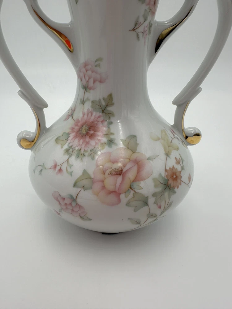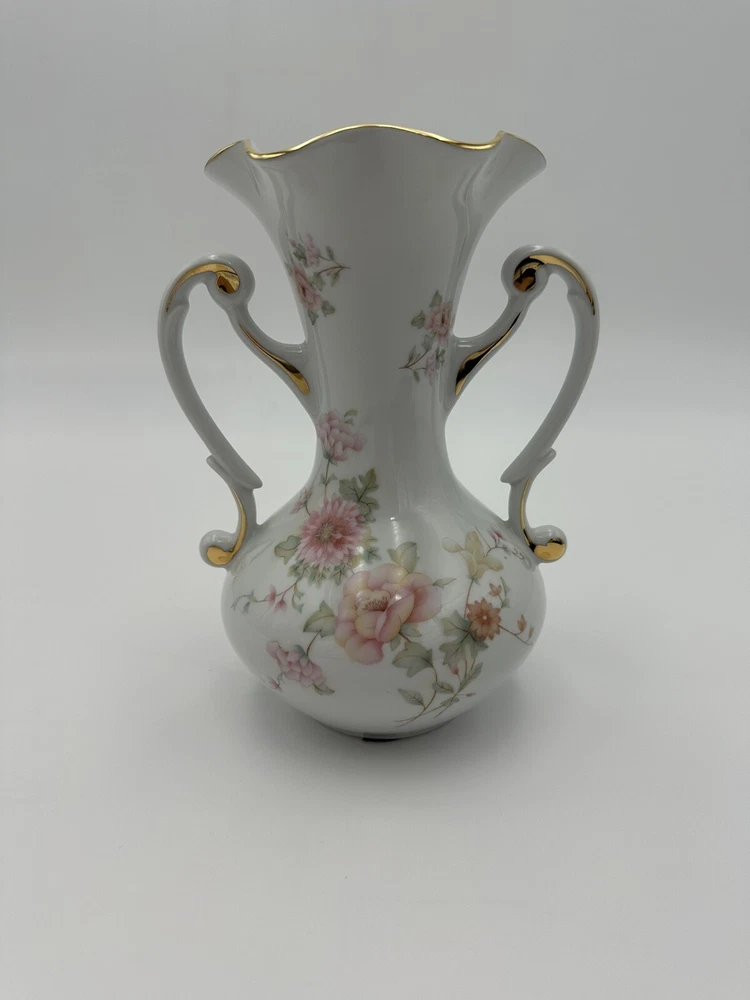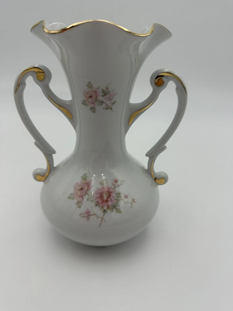 Ruffled Top Gold Trim Bottom protected Two handles Hand Painted Floral Motif Made in France This antique French Limoges vase is a charming addition to any collection. The delicate porcelain material is beautifully hand-painted with a lovely floral design, adding an elegant touch to any room. Made in France, this vase has a timeless style that will never go out of fashion. Perfect for collectors of decorative items, this piece will add a touch of sophistication to any space.