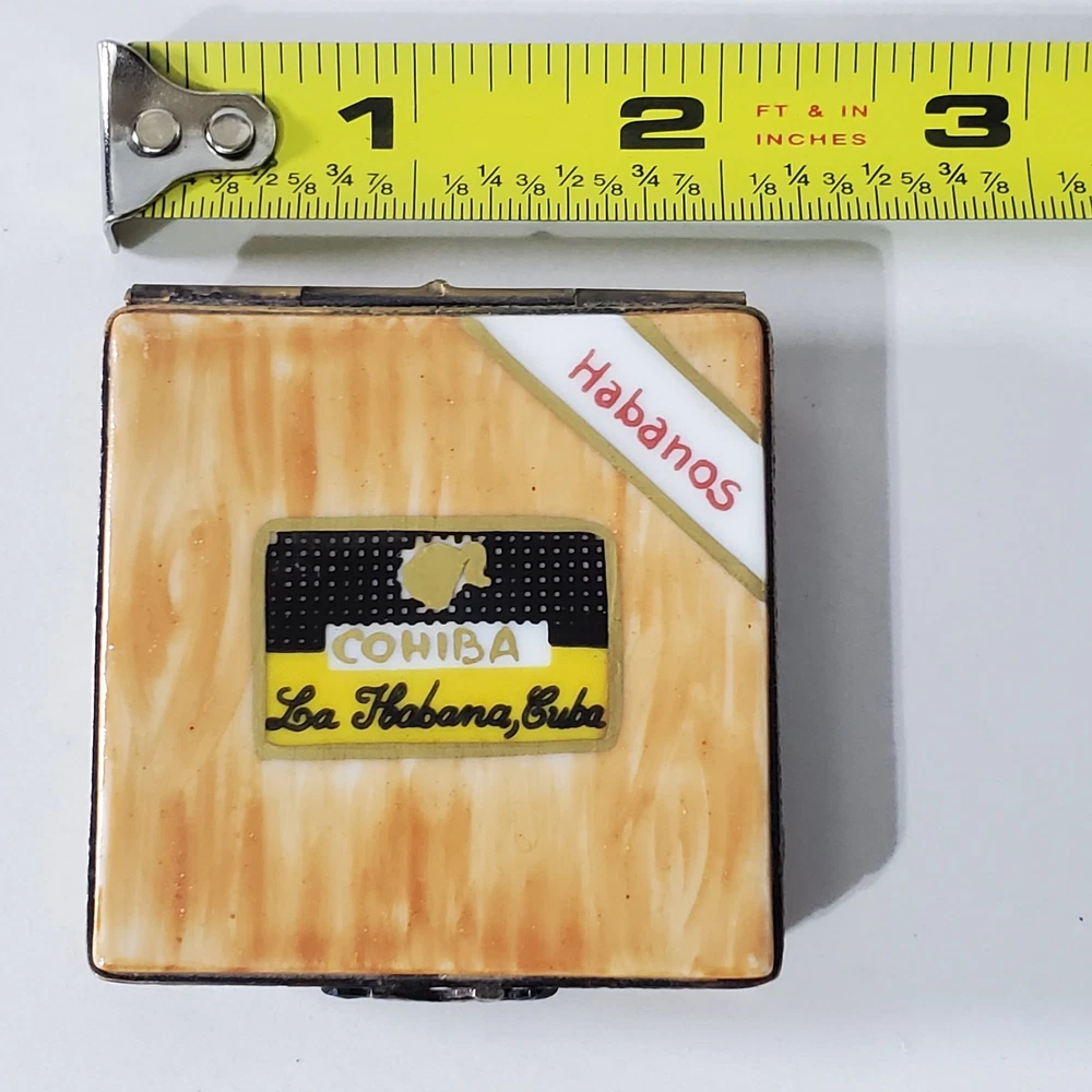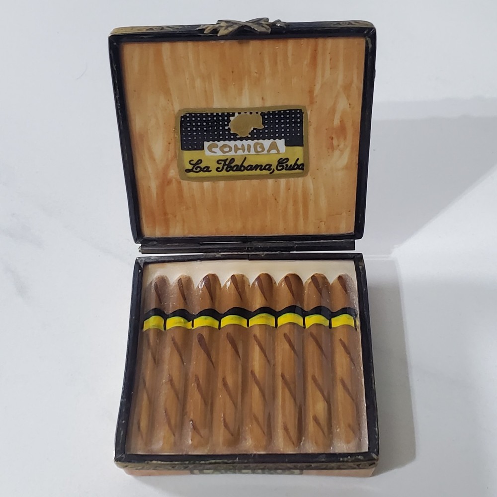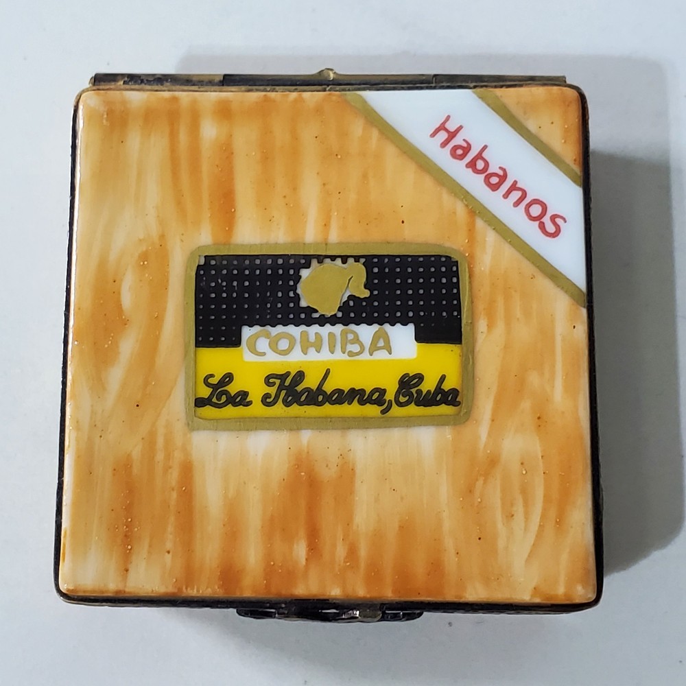 Limoges Imports Peint Main France Porcelain Trinket Box Cohiba La Habana Cuba Cigar Hand painted In good condition No chips or breaks Please view all photos for condition and measurements Thank you for viewing our products. PRODUCT SOLD AS IS. Please Message With Questions Prior To Purchase. If you have an issue with any of our items please reach out to us prior to contacting eBay. Thanks! Please note: We do sell new and used items. Our used items are pre-owned / pre-loved & may show signs of wear. Please view all photos for details, size, & imperfections as they are a form of the descriptions in addition to what is stated in the description section. We will do my best to inspect each item to find the best quality items possible. We do not include/replace batteries in any of our items unless they have been supplied by the manufacture and are in new unused condition. If an item is sent to you NEW / SEALED and you open it or remove the tags, it is NO LONGER ELIGIBLE FOR RETURN. Opened items / Removed tags - Means the item is NO LONGER in its original state and can no longer be sold as NEW. -Thank you for your understanding We are often asked about shipping cost. We are excited about your purchase and take pride in your package arriving to you undamaged. We wrap and cushion all necessary items prior to shipping which adds weight to your package. Unfortunately, this is not optional. Thank you for your understanding. We do not accept returns or issue refunds however in the event we do accept your return or issue a refund we do not reimburse your original shipping fee. Due to how eBay handles international shipping we do not accept any international returns. Thanks again!