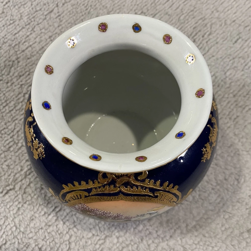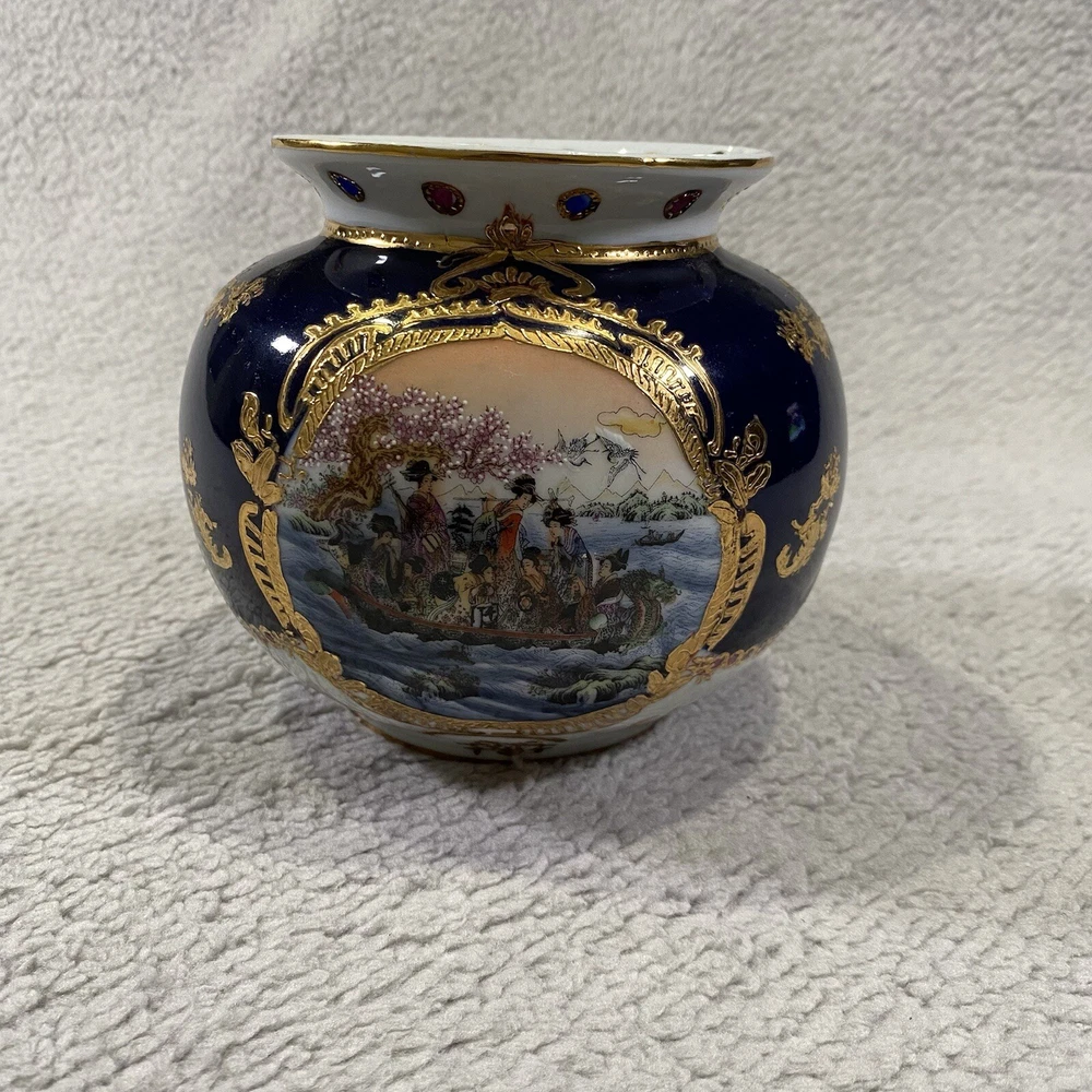 Color:BlueSize:SmallCustom Bundle:NoMaterial:PorcelainSubject:BoatFeatures:DecorativeFinish:Gold GiltShape:RoundCountry/Region of Manufacture:FranceBrand:LimogesCustomized:NoOccasion:All OccasionsType:VaseNumber in Pack:1Item Height:3 1/2 inchesGlassmaking Technique:PorcelainItem Weight:12 ozFeatured Refinements:Limoges Cobalt BlueOriginal/Reproduction:OriginalStyle:AsianPattern:Water scene with GeishaItem Width:4 inches top diameter
