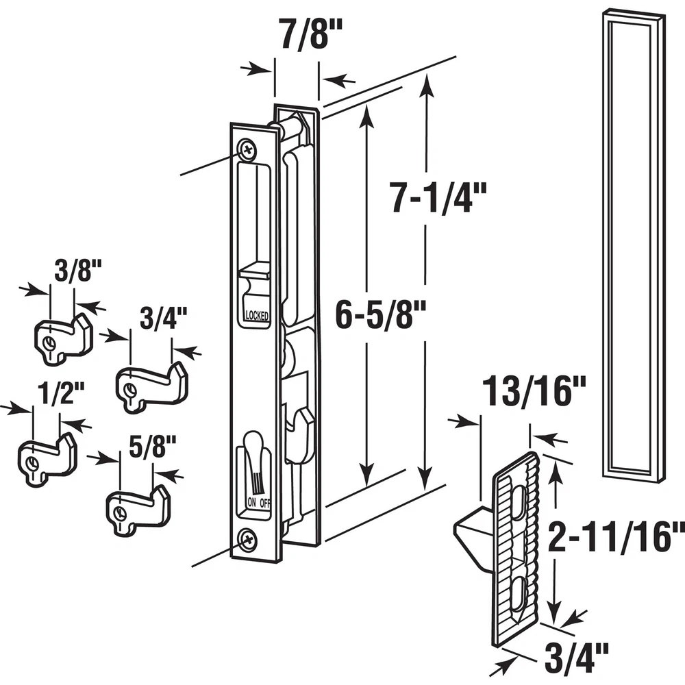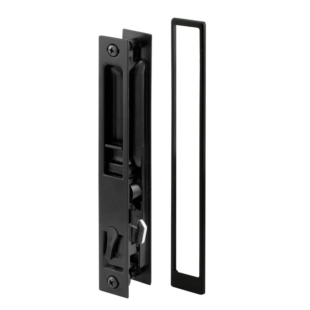 Product Description This non-handed diecast black flush mount patio door handle is a design that fits Croft Series 301 patio doors, and a variety of other manufacturers of 7/8 inch to 1-1/8 inch thick patio doors. It comes with a shim to accommodate the thinner 7/8 inch thick door. Mounting holes are 6-5/8 inch on center. The inside and outside handles are 7/8 inch wide and 7-1/4 inch tall. It comes with a keeper and has a 4 latch hook assortment to accommodate the needs of most doors. From the Manufacturer This handle set is constructed from die cast and comes finished in black. It has a reversible design and includes an automatic unlatching option to prevent accidental lockout. This handle set fits Viking and similar styled doors with a 1 in. thick rail. Used by Croft doors on their 301 series as well as a variety of other sliding patio door manufacturers Can be used for a left or right handed door 4 Different hook latches Diecast with a painted black finish Fits doors 7/8 inch to 1-1/8 inch thick All the necessary mounting hardware is included for a quick and easy installation A Phillips head screwdriver is required for installation Please refer to the line art drawing for dimensions and with your needs before ordering