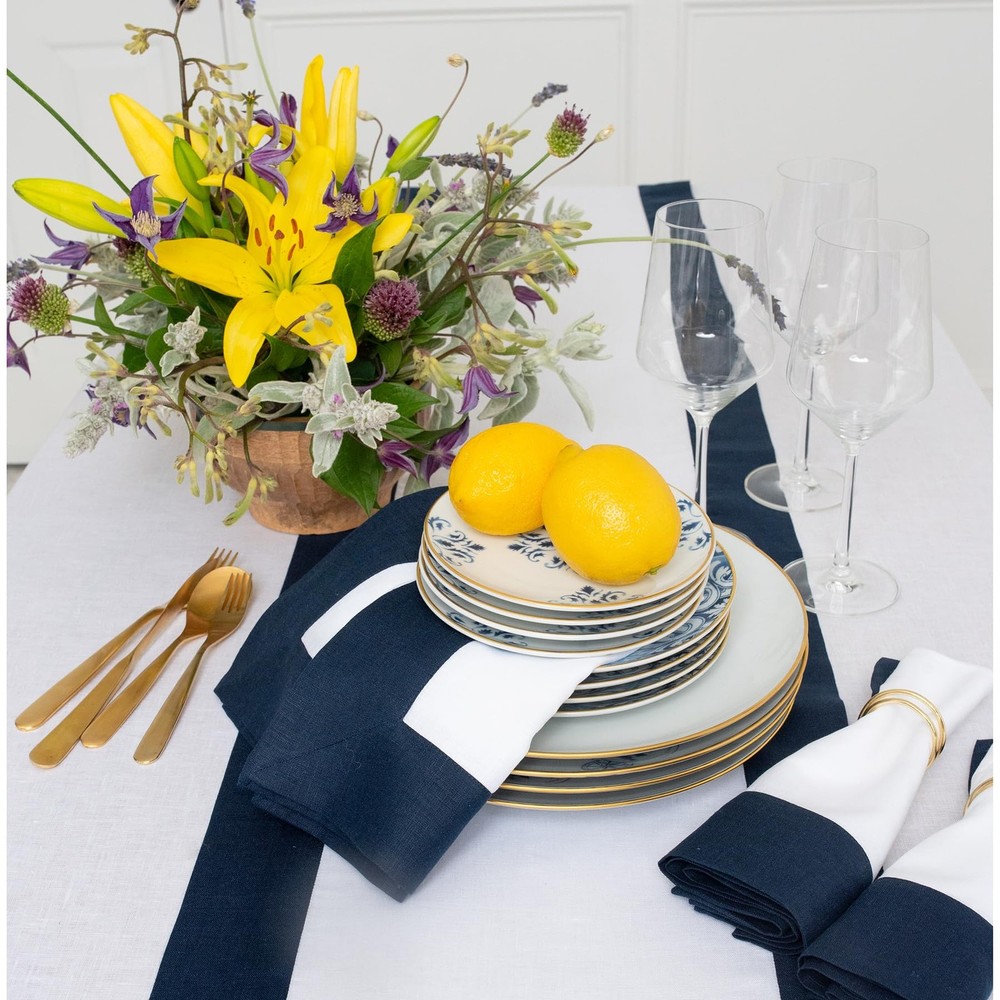 Designed for special occasions and holidays, our Contempo Table Runner is made of 100% pure linen, featuring a bright white center, framed with a wide accent border. Offered with a stripe of soft pastels and bold colors, this table runner pairs well with our coordinating Contempo Tablecloth, Placemats and Napkins. ๐๐ผ๐บ๐ฝ๐ผ๐๐ถ๐๐ถ๐ผ๐ป ๐ฎ๐ป๐ฑ ๐๐ฟ๐ฎ๐ณ๐๐๐บ๐ฎ๐ป๐๐ต๐ถ๐ฝ : 100% Pure European Flax Linen Navy and White Christmas Table Runner - ๐๐ผ๐ป๐๐ฒ๐บ๐ฝ๐ผ | Handcrafted By Skilled Artisans. ๐ฆ๐ถ๐๐ฒ : ๐ญ๐ฐ ๐ ๐ต๐ฌ ๐๐ป๐ฐ๐ต - Usually recommended for 6โ8-seater tables - Dining tables, Hallway tables, Cabinets and Dressers. ๐๐ผ๐น๐ผ๐ฟ : ๐ก๐ฎ๐๐ ๐ฎ๐ป๐ฑ ๐ช๐ต๐ถ๐๐ฒ | Color appearance may vary depending on lighting and screen displays. ๐๐ฎ๐๐ ๐๐ฎ๐ฟ๐ฒ : ๐ ๐ฎ๐ฐ๐ต๐ถ๐ป๐ฒ ๐ช๐ฎ๐๐ต๐ฎ๐ฏ๐น๐ฒ, Low Iron as Needed, Steam Iron for a crisp look. Pure Linen mellows with each washing, betters with age and requires minimal care. ๐๐ฏ๐ผ๐๐ ๐ญ๐ฌ๐ฌ% ๐ฃ๐๐ฟ๐ฒ ๐๐ถ๐ป๐ฒ๐ป : The beauty of each pure linen piece is the natural fibres. Like all fine linens and textiles, each batch of our linen is different and unique. Slight color, texture variations and wrinkles are an inherent quality of ๐ญ๐ฌ๐ฌ% ๐ฝ๐๐ฟ๐ฒ ๐น๐ถ๐ป๐ฒ๐ป handcrafted pieces, adding to their relaxed beauty and bringing a wonderful heirloom feel to each. ๐ง๐ฎ๐ฏ๐น๐ฒ๐๐ฐ๐ฎ๐ฝ๐ฒ ๐ฎ๐ป๐ฑ ๐ข๐ฐ๐ฐ๐ฎ๐๐ถ๐ผ๐ป๐ : Create a ๐บ๐ผ๐ป๐ผ๐ฐ๐ต๐ฟ๐ผ๐บ๐ฎ๐๐ถ๐ฐ or ๐บ๐ถ๐ -๐ฎ๐ป๐ฑ-๐บ๐ฎ๐๐ฐ๐ต look with our coordinating products. Available in various colors, sizes, and styles for celebrating weddings, baby showers, bridal showers, special occasions, and holidays like Hanukkah, Christmas, Valentineโs Day. A perfect gift for anyone who loves a stylish table settings. ๐๐ผ๐บ๐ฝ๐ผ๐๐ถ๐ฐ๐ถรณ๐ป ๐ ๐ฎ๐ฟ๐๐ฒ๐๐ฎ๐ปรญ๐ฎ : 100% lino puro ๐๐๐๐น ๐ ๐ฎ๐ฟ๐ถ๐ป๐ผ ๐ ๐ช๐ต๐ถ๐๐ฒ Camino De Mesa | Hecho a mano por artesanos expertos. ๐ ๐ฒ๐ฑ๐ถ๐ฑ๐ฎ: ๐ญ๐ฐ ๐ ๐ต๐ฌ ๐ฝ๐๐น๐ด๐ฎ๐ฑ๐ฎ๐ - Usualmente recomendado para mesas de 6 a 8 plazas: mesas de comedor, mesas de pasillo, aparadores y tocadores.