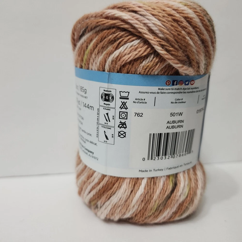 Yarn Bee Soft & Sleek Low Pill Fiber Yarn Color 200 Brownie 4.9 Oz Skein