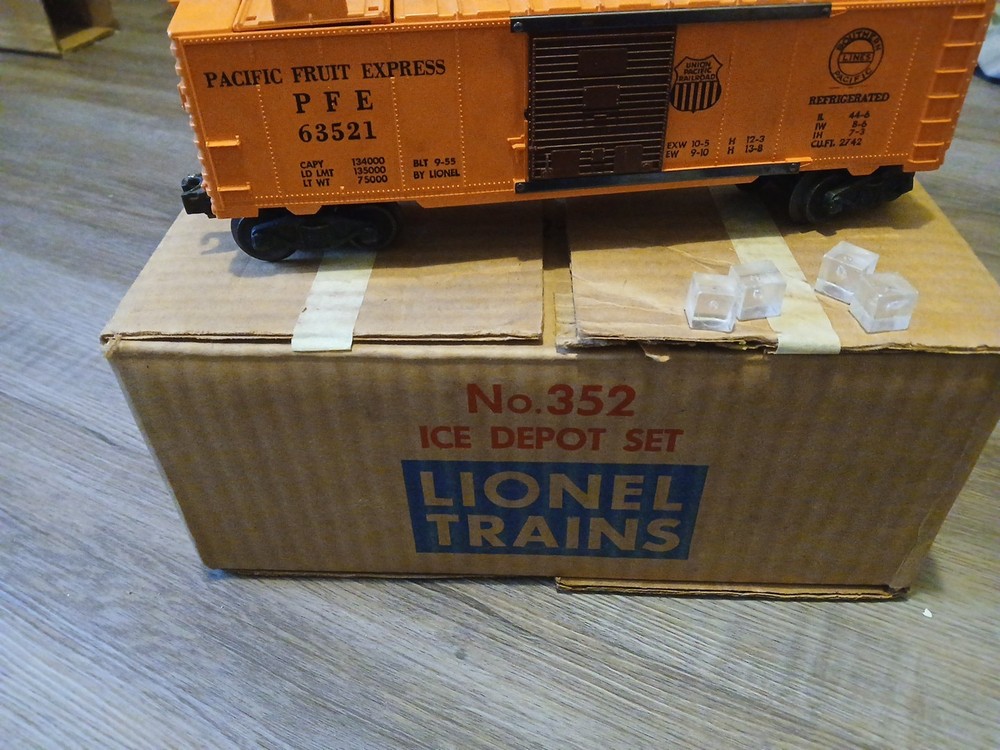 Lionel Postwar 352 ice station with box has 4 ice cubs and insert. Great condition everything works. See photos for best description thanks and see my other auctions.