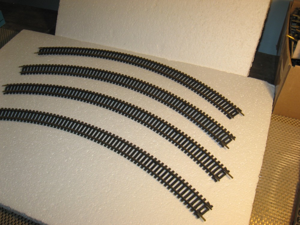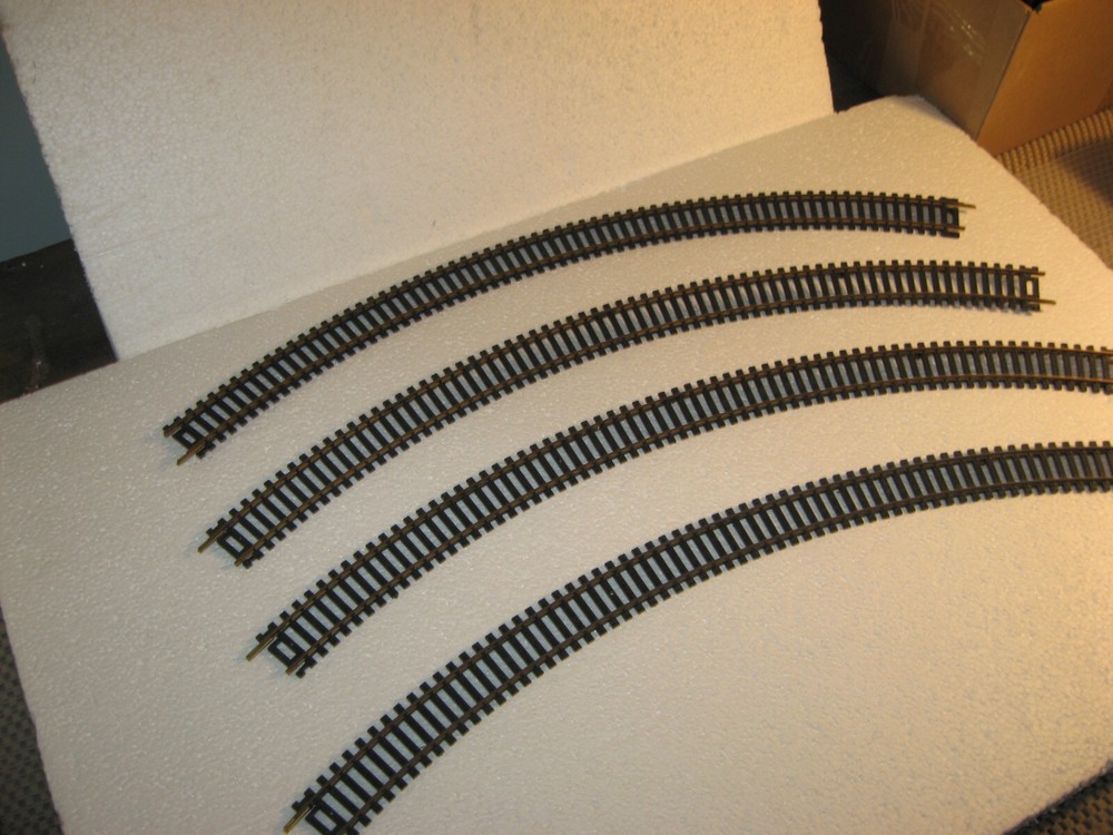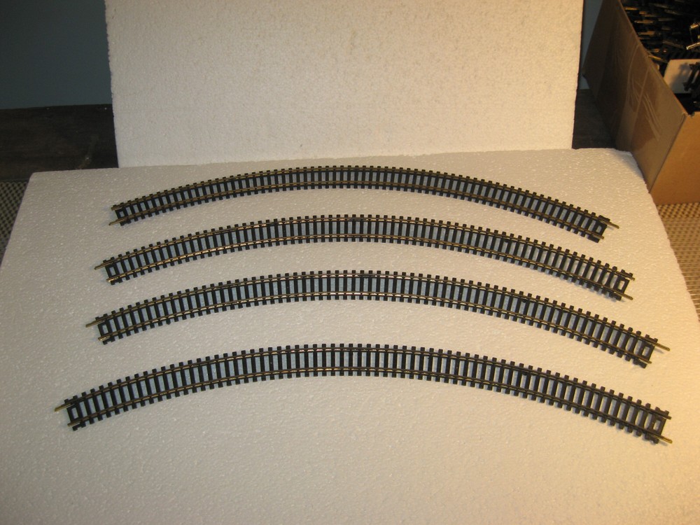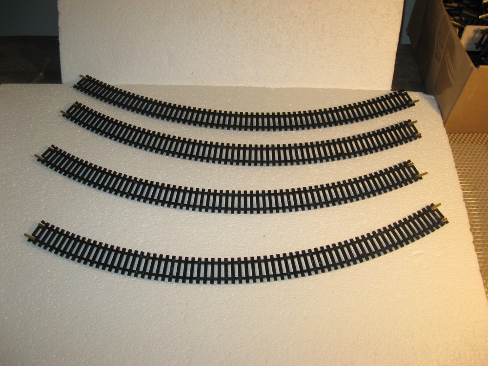 HOWDY FOLKS! THIS IS THE HO SCALE LIONEL FOUR [4] 18" RADIUS CURVES. THERE ARE 4 CURVES. THEY HAVE BLACK TIES AND NONE BROKEN. ALL HAVE THERE JOINERS INTACT. THESE ARE NICE ONE COMPLETE CURVE. LIKE NEW CONDITION. PLEASE CHECK ALL PICTURES AND ZOOM RIGHT IN THERE! ONLY $25.00 AND YOU CAN BUY IT NOW IF YOU WISH TOO. ADD IT TO YOUR COLLECTION OR LAYOUT. WE COMBINE SHIPPING ON ALL OUR ITEMS.IF YOU NEED ANYTHING PLEASE DON,T HESITATE AND ASK! JUST USE THE CONTACT SELLER ON TOP OF THE LISTING ON EBAY EMAIL. THANK YOU AND TAKE GREAT CARE NOW!
