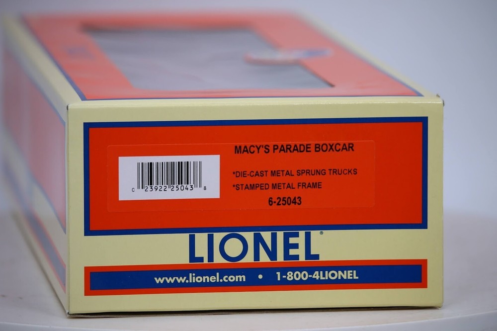 This Lionel 6-25043 O Gauge boxcar is a perfect addition to any model railroad collection. It features a colorful multicolor design with a Macy's corporate roadname theme, perfect for the upcoming Thanksgiving Day parade. The boxcar is ready to go and pre-built, with an analog control system and three-rail system rail compatibility. The vintage 2004 model is in great shape and has been well-maintained, with a grade of C-9 factory new. The boxcar is suitable for ages 17 and up and is sure to be a hit with any collector or model railroad enthusiast. Don't miss out on this opportunity to add a piece of history to your collection! Lionel 6-25043 O Gauge Macy‘s Thanksgiving Day Parade Boxcar New in the Box ADDITIONAL FEATURES: Die-cast metal sprung trucks and operating couplers Opening doors Traditional Freight Cars Operating couplers—uncouple cars automatically with a remote-control or uncoupling track section Colorful paint schemes Officially licensed cars Collectible series Perfect additions to Lionel train sets Perfectly sized to match Lionel Traditional Locomotives Minimum Curve: O-27 (Except where noted) PRODUCT SPECIFICATIONS Gauge: Traditional O Gauge Brand: Lionel Min Curve: O-27 Dimensions: Length: 10 1/2” Most Recent Catalog: Lionel 2007 Train Catalog Volume 1 Original Price: 44.99 Please Read Before Purchasing We strive to provide a clear and pleasant buying experience for all our customers. Below is important information regarding item descriptions, shipping, returns, and feedback. ITEM DESCRIPTIONS Items are described to the best of our ability and accompanied by detailed photos. Please review them carefully before purchasing. Only items pictured and described are included in the sale. For items sold "AS-IS," functionality may be unknown, and they are priced accordingly. Refunds for "AS-IS" items will only include the purchase price, not shipping costs. If you have additional questions or require further details, feel free to ask before bidding or buying. SHIPPING INFORMATION Combined Shipping: If purchasing multiple items, please request an invoice before payment to ensure accurate combined shipping costs. Items will be shipped within 24 hours of payment receipt (excluding weekends and holidays). Payments received after noon EST on Fridays will ship the following business day. International shipping is available—please contact us with any questions. We carefully package items, but in the rare event of damage during transit, please contact us to resolve the issue. RETURNS We abide by eBay's Money Back Guarantee. Items can be returned within 30 days under the following conditions: Defective/Damaged Items: A full refund will be issued after the item is returned and inspected. "AS-IS" or Buyer’s Change of Mind: Refunds will include the purchase price only, with the buyer responsible for shipping costs. Please contact us before initiating a return request to discuss solutions. IMPORTANT NOTES Items may show signs of long-term storage, including blemishes, dust, or minor wear. Some components, such as couplers, brake wheels, steps, or ladders, may be missing or damaged. Items may require cleaning for optimal appearance. Photos are taken under lighting that may slightly affect color or hue. Feel free to request additional photos in natural lighting or a more detailed description if needed. FEEDBACK We value your satisfaction and appreciate positive feedback. If there are any concerns, please contact us before leaving neutral or negative feedback—we’ll work to resolve the issue promptly. Thank you for your interest in this item! We look forward to a smooth and satisfying transaction.