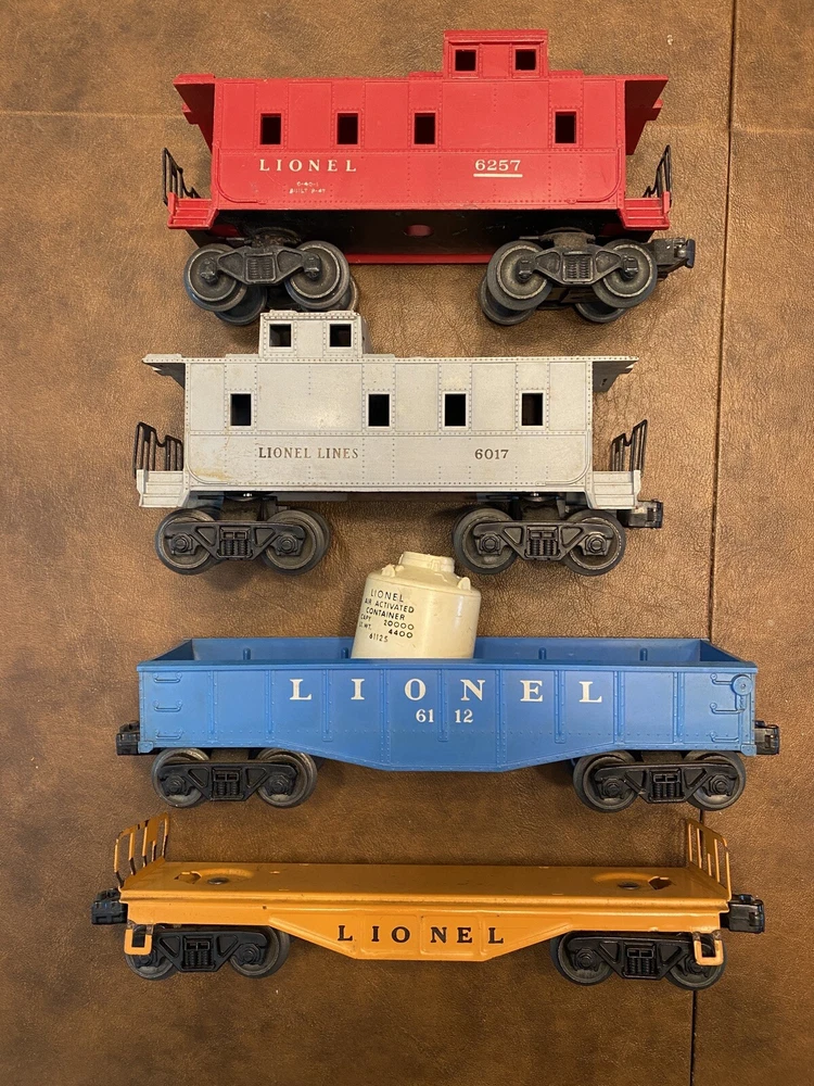 Lionel Postwar O Train #1655 Locomotive Caboose Train Cars Auto Loader - Mix Lot of 9 untested engines are heavy cast metal and the others are steel or plastic preowned condition with normal signs of wear, missing parts – will need a good cleaning Please review all pictures and ask anY questions before bidding Please review all pictures; they are part of the description. If you need additional pictures or information, please ask. All Items have been cleaned and sanitized. Please don’t hesitate to ask any questions or make an offer. Thank you for looking and Have a Great Day! “QUALITY MESSAGE: Your satisfaction is our #1 priority. All our products are in good condition, but as most of our products are preowned, they show normal signs of use or are in like new condition. We do look over each item and will describe anything that is out of the ordinary- but we have and may inevitably over-look things. If you have received your item(s) and find that there is missing information such as a defect, please contact us prior to leaving a negative or neutral feedback and we'll be sure to offer a speedy resolution to any issues that may arise.