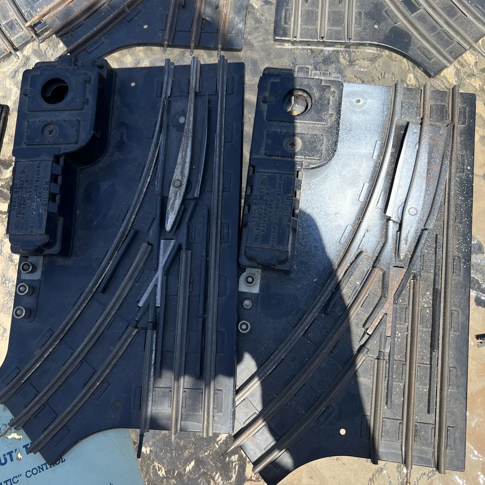 The Lionel Remote Control Metal Train Tracks No. 1122 1022 consist of 80 pieces of ready-to-go pre-built track designed for use with O gauge model trains. Made of durable metal and plastic, these tracks feature switches for added excitement and control. The three-rail system ensures smooth operation, making them an ideal choice for model railroad enthusiasts looking to expand their layout with quality and reliable track components.