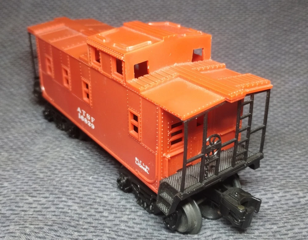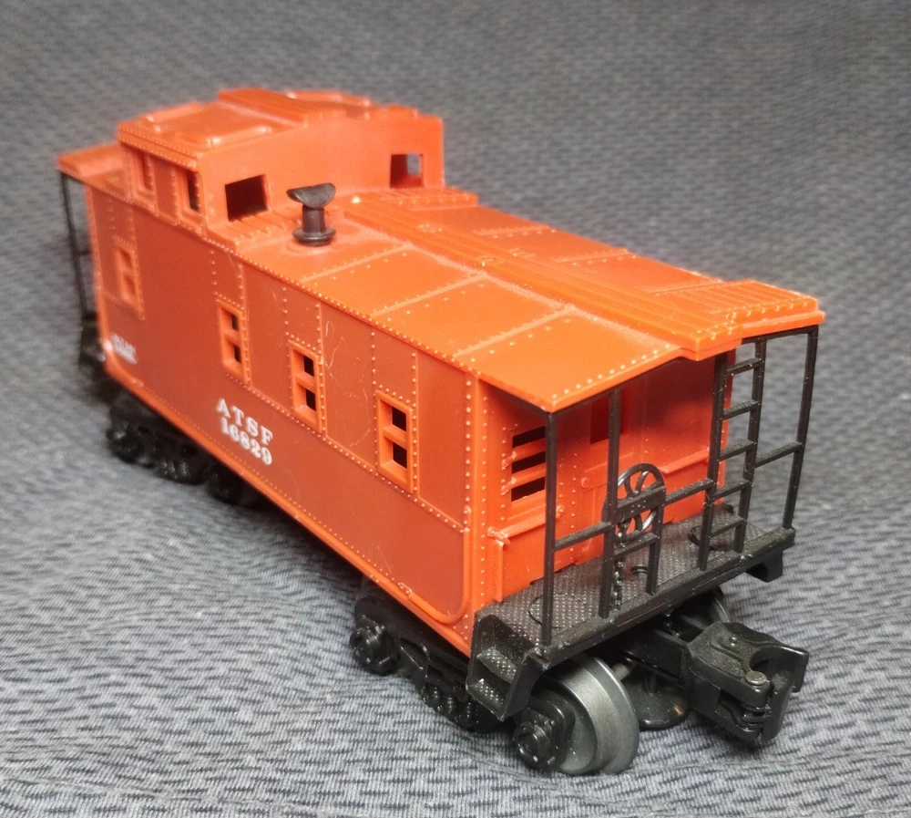 Crafted by Lionel, this O Gauge Santa Fe Caboose 16829 is a detailed replica of the iconic caboose car, complete with the distinct red paint scheme that's synonymous with the ATSF (Atchison, Topeka, Santa Fe) railroad. It's a true reflection of the era. This caboose is in good clean working condition. It has no box.