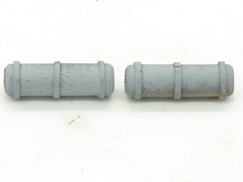 Thanks for looking. Offered is a pair of reproduction wood air tanks. Old stock reproduction pair of wood air tanks in gray primer ready to paint. Tanks measure approximately 2-1/2" long and are intended for the 18, 19, and 190 coach, combine, and observation cars. Parts weight under 1 pound packed for shipping. I happily combine shipping. Lionel Standard Gauge Pair of Reproduction Wood Air Tanks for 18, 19, 190 Cars Lionel Standard Gauge Pair of Reproduction Wood Air Tanks for 18, 19, 190 Cars Click images to enlarge Description Thanks for looking. Offered is a pair of reproduction wood air tanks. Old stock reproduction pair of wood air tanks in gray primer ready to paint. Tanks measure approximately 2-1/2" long and are intended for the 18, 19, and 190 coach, combine, and observation cars. Parts weight under 1 pound packed for shipping. I happily combine shipping. Please use the shopping cart to add the items you are interested in and request a total. A revised invoice with updated shipping will be sent. You can also complete checkout right away, and I will refund any overage paid. I do not look to make a profit from shipping, the rates are quoted by the carrier and are passed along. Because of the increase in shipping, it is in many cases cheaper to ship 2 or more items together in the same box when you cost average things. Please look to see if there is anything else of interest that can help to lower the overall cost, especially if that other item was something you were interested in anyways. I do try to offer as many shipping options as possible to suit your needs, both as far as cost goes, and speed at which you receive an item. International shipping available. Payment Payments can be made by way of PayPal. Please feel free to email me with any payment questions you may have. Payments are due within 7 days of the auction(s) ending. I will extend the payment period if you are bidding on multiple items. Please let me know when you have completed bidding for items you are interested in, and are ready to receive the corrected totoal for your multi-item purchase. Please do not pay for multi-item purchases until you have received a corrected invoice total. Keep in mind this could take up to an extra day to receive your total. Shipping I happily combine shipping on all purchases. Shipping is made by way of USPS mail. You will have the choice of First Class, Parcel Post/Select, Priority Mail, or Express Mail. These choices will be based upon availabilty for the package size / weight, and destination. I try to offer every available shipping method for your purchase. International Shipping. I happily ship all train / hobby/ collectable items world wide. Please contact me for details to make sure your country does not have shipping restrictions. Please keep in mind that shipping times are estimates, and parcels may be held up by customs. International shipping is by way of USPS Mail. Your choice of First Class Package, Priority International, or Express Mail International. NOTE: First class package may not be available for large orders. International Customs Fees. Additioanl import or duties fees may be charged by your country. These potential fees are not included in the shipping paid on your purchase. Please contact your customs / duties office to check on any additional fees that could due. FEEL FREE TO CONTACT ME WITH ANY SHIPPING QUESTIONS YOU MAY HAVE. Terms of Sale Due to the nature of the items being offered for sale, purchases are considered final. Every effort is made to give as honest a review of an item being offered as possible. Since many of these items are vintage, proper operation of these items is difficult to guarantee. Most items are either bench tested, or tested on a layout prior to listing. Please feel free to contact me prior to bidding or purchasing an item if you have any additional questions you would like answered. Contact Us Please feel free to contact me with any questions you may have about an item being offered for sale. I will do my best to get back back in touch with you the same or very next day. Get images that make Supersized seem small. Showcase your items with Auctiva's Listing Templates! THE simple solution for eBay sellers. Track Page Views With Auctiva's Counter