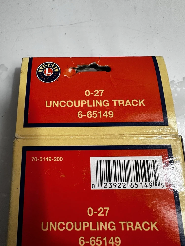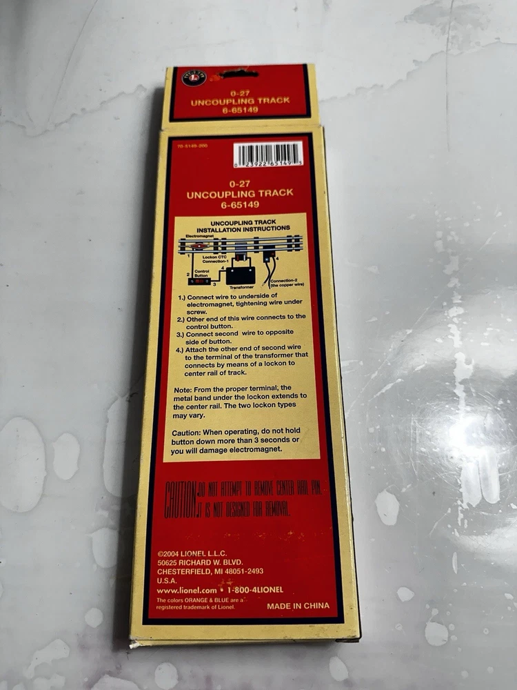 The Lionel Uncoupling Straight Track is designed for O-27 Gauge model railroads. This track form allows for uncoupling of train cars while running on a straight section of the track. Perfect for adding a realistic touch to your model railroad layout, this track piece is manufactured by Lionel, a well-known brand in the model railroads and trains industry. The SKU for this product is 6-65149.