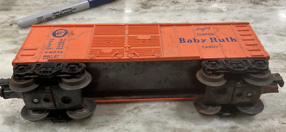 Lionel trains 1950 toy train car Baby Ruth found in garage rafters estate sale