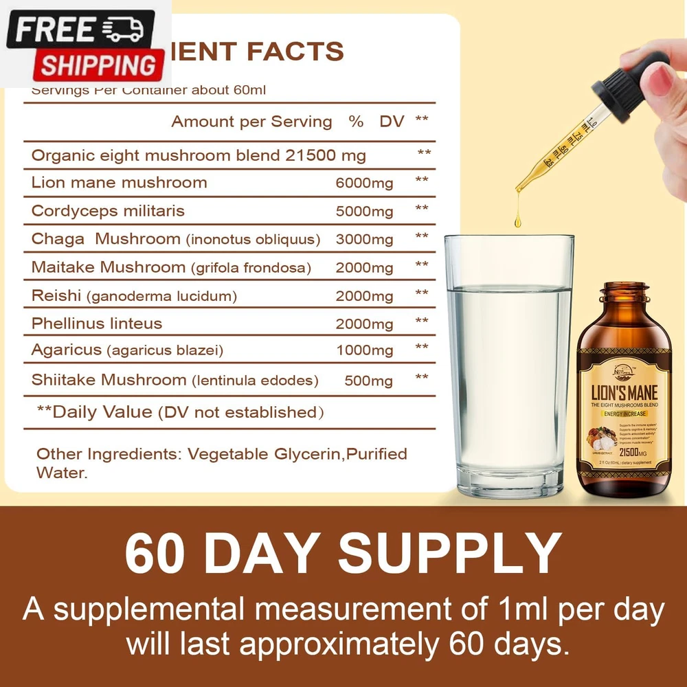 Fast Shipping On All Items 30 Days Money Guarantee Customer Support Excellent Service 100% Satisfaction Satisfaction Guaranteed Lions Mane Supplement, Liquid Mushroom Extract Drops, 8 Mushrooms Complex for Immune System, Memory, Focus Boost, Mushroom Supplement with Lion'S Mane, Cordyceps, Reishi, Vegan - 2 Fl Oz (2 Pack) Specification Item Package Quantity 1 Age Range (Description) Adult Item Form Drop Package Dimensions 5.43 x 3.98 x 1.65 inches; 10.23 ounces Size 2 Fl Oz (Pack of 2) 3.98 inches x 5.43 inches x 1.65 inches. Weight: 10.23 oz Item Description Daily Immune Support: Cultivate everyday immunity with help from a 8 mushroom blend designed to support foundational health. Organic eight mushroom blend includes lion's mane, cordyceps militaris, chaga mushroom, maitake mushroom, reishi, phellinus linteus, agaricus blazei, shiitake mushroom. Organic Lions Mane Extract: Lion's Mane, known as the "brain boosting mushroom", supports brain health and benefits cognitive functions; The antioxidants within this mushroom help slow the aging process by protecting against oxidation in the body. Our potent mushroom tincture helps you focus and energize your daily routine. Effective and Better: This lions mane mushroom extract is offered in liquid form, which is better absorbed by the body. Our Mushroom Tincture is crafted under stringent quality controls. Each non-GMO, gluten-free, and vegan-friendly ingredient is chosen to provide a high-quality supplement for your wellness regimen. 120 Day Supply: Take 1 ml daily as a dietary supplement with food or on an empty stomach. Mushroom supplements come with droppers that are clearly labeled with a graduated scale to make it easier for you to use. Enjoy your energy supplement anytime, anywhere. Free of Common Allergens: Non-GMO, Vegan, Dairy Free, Nut Free, Gluten Free, Soy Free, Sugar Free, No Synthetic or Artificial Colors, Alcohol Free Tincture. Can be taken directly by mouth or added to water. Product Description About us We offer the best prices around on high quality products. Our E-store includes media such as books, movies, music and games while offering electronics, toys, sporting apparel, clothing, tools, general home, garden items and more. Shipping We are always working hard to ensure your package arrives as soon as possible. Please understand that some factors like weather, high postal traffic, and the performance of shipping companies are outside of our control. We offer free shipping to the lower 48 states and ship within 2-3 business days of payment, usually sooner. We do not accept P.O. Boxes. Please provide a physical address. For shipping outside of the continental USA, we only use eBay's Global Shipping Program.The item is shipped to KY and then sent to the rest of the world. International customers are responsible for all duties and taxes. Continue to check out to calculate costs for shipping the item to your country. Messages regarding eBay's Global Shipping Program MUST be directed at eBay EXCLUSIVELY. Returns We offer a 30-Day Return Policy on items in which you are not completely satisfied with. You have the option of a full-refund or an exchange of the item. No returns are available on items shipped outside of the USA Satisfaction We try over very best to make sure every customer is completely satisfied. If there's a problem, message us! We're happy to help. Payment Options Shop With Confidence