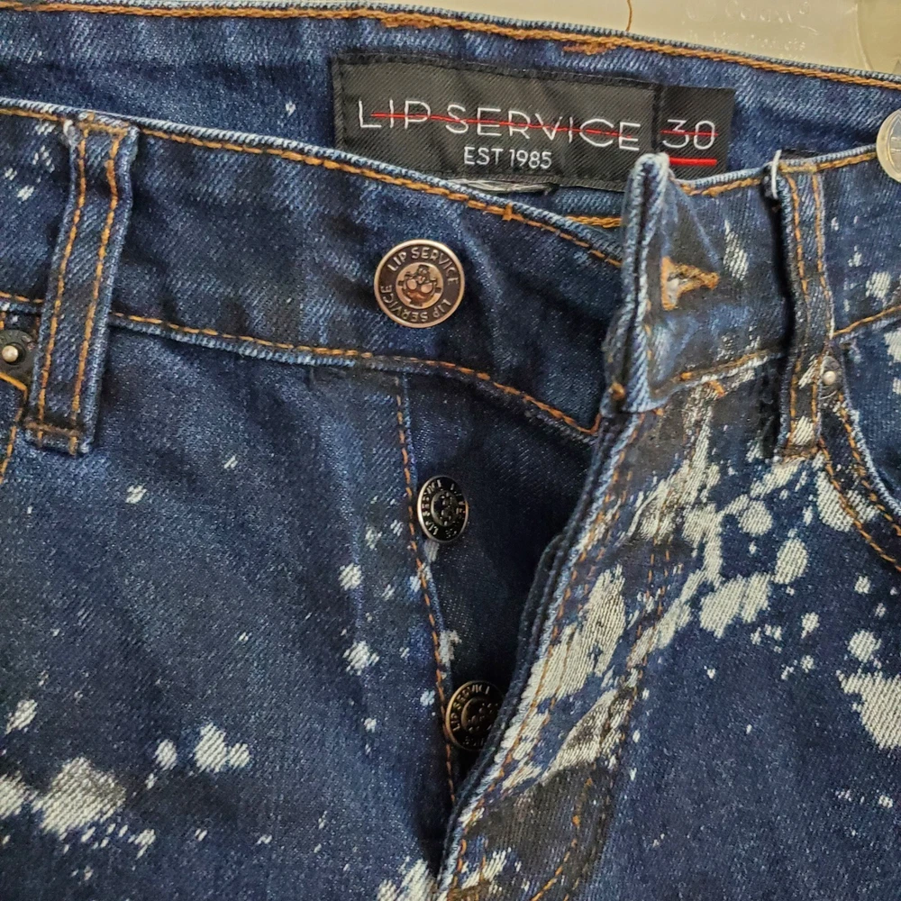 Lip Service Kill City Stretch Junkie Fit Bleach Splatter Jeans Size 30x 32 Punk Very good pre-owned condition. No flaws or excess wear noted. Skinny fit, some stretch, button fly Waist: 30" Front rise: 8.5" Inseam: 32" Leg opening at the bottom: 6" across I'm happy you found my listings - I list new items and ship items every day. Very happy to combine shipping. If you have any questions, please ask.