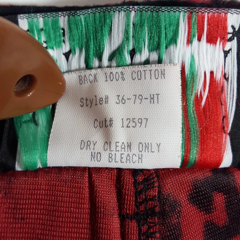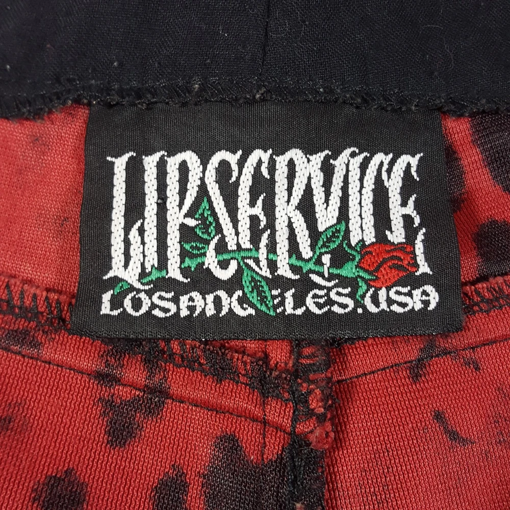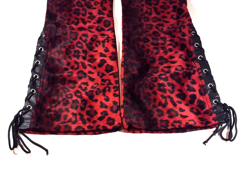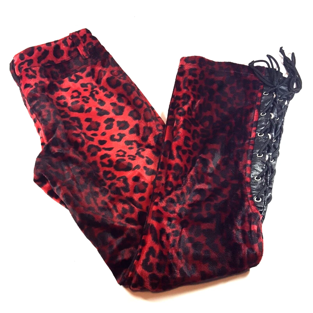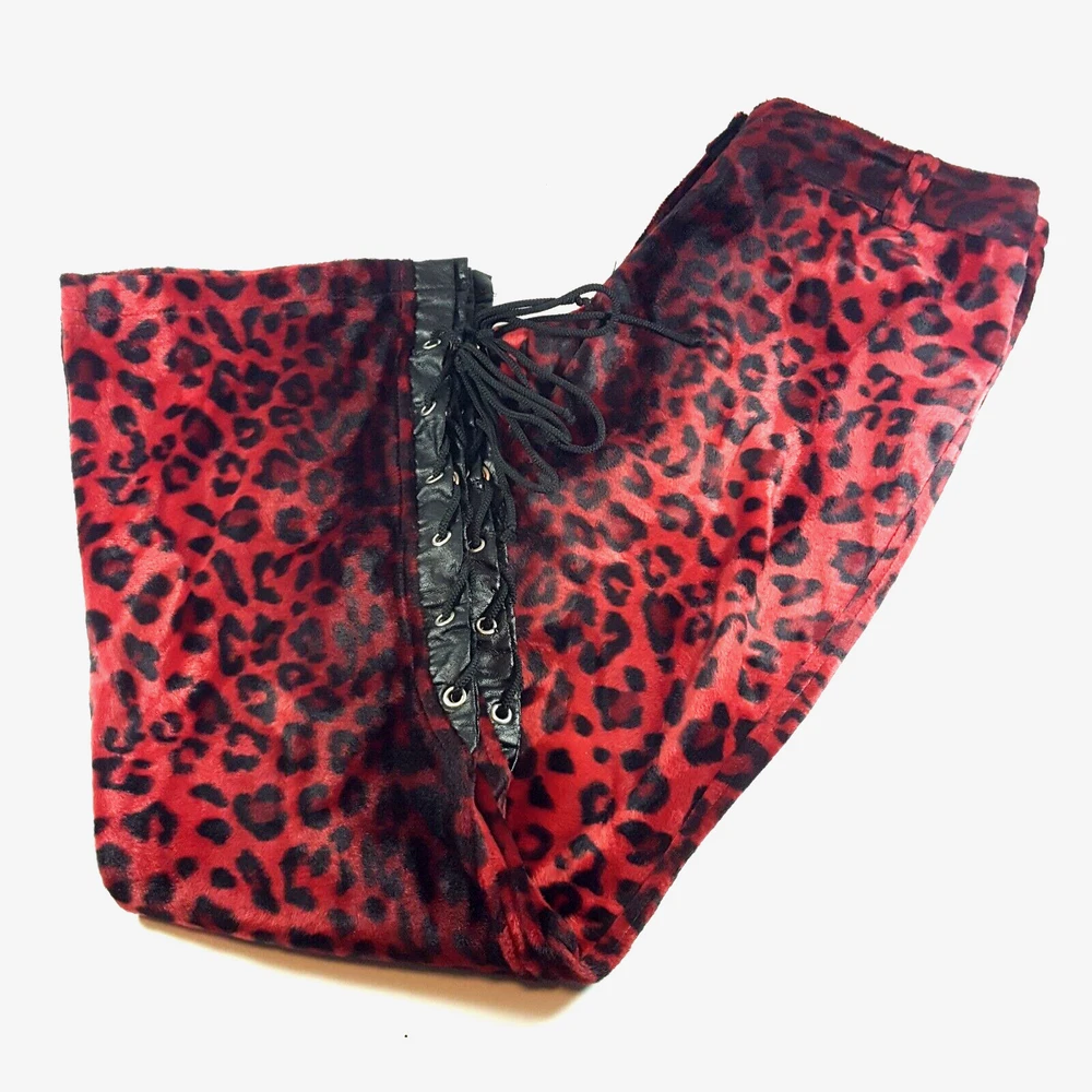 Vintage Lip Service Women's Pants Leopard Animal Print Red Black Belted USA One of a kind vintage 90s Lip Service leopard print pants in a color and pattern that can't be found on any retail platform anywhere in the world. In other words, this is an extremely rare vintage piece of apparel. Important Notes: When buying apparel items online always be sure to rely on the actual measurements in the item's listing. "Do Not" rely on the label size only as many manufacturers surprisingly have different measurements for their sizes. Prior to purchase , please flat lay a pair of your similar style pants, measure them using our specs below and if the numbers match or come very close, these will certainly fit you. Yes, these are a bit long with relationship to the inseam and waist. Due to the rare iconic nature of these, purchasing them will not be a mistake as you will always be able to sell them for at least what you purchased them for and likely much more as the years pass. So if you have to have to invest in having the length altered, no big deal. They will easily retain their value. These have to be dry cleaned and can't be machine washed. Measurements: Waist (inside edge to inside edge): 14 3/4" (29 1/2" total) Inseam (crotch mid-point to inside leg bottom): 32" Outseam: 40 1/2" Rise: 9" Leg Opening: 9 3/4"