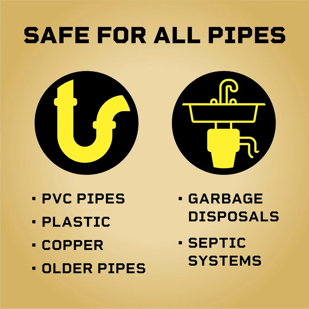Store New Arrivals Add to Favorite View Feedback Liquid-Plumr Pro-Strength Clog Destroyer, Liquid Drain Cleaner, 80 Fluid Ounces (Package May Vary) Description Item model number 044600002286 Is Discontinued By Manufacturer No Product Dimensions 7.07 x 4.02 x 10.8 inches; 0.01 ounces Product Benefits Removes tough clogs, prevents new clogs and odors, protects pipes, maintains clear pipes and drains Item Weight 0.01 Ounces Department Unisex-Adult State of matter Liquid Scent Unscented Size 80 Fl Oz (Pack of 1) DRAIN CLOG REMOVER: This Liquid-Plumr Pro-Strength Clog Destroyer Gel is fortified with 3X action to protect, prevent and destroy clogs; Packaging may vary WORKS ON MULTIPLE CLOG TYPES: This gel clog remover tackles the toughest clogs from hair (2), grease and soap scum and cuts through standing water to clear total blockages SAFE ON ALL PIPES: Made with Pipeguard, this Liquid-Plumr drain cleaner protects pipes and is safe for septic systems, disposals (3) and pipes, including PVC, plastic, copper and old drain pipes ODOR ELIMINATOR: Pro-Strength Clog Destroyer works great on bathtubs, bathroom sinks, showers, kitchen sinks and garbage disposals (3); Do not use with plunger or in toilets MAINTAIN CLEAR PIPES AND DRAINS: When used monthly, this Liquid-Plumr Pro-Strength Clog Destroyer prevents clogs from coming back (1) in your pipes or drains Get 3X action with Liquid-Plumr Pro-Strength Clog Destroyer. This formula clears the toughest clogs and destroys, protects and prevents clogs (1). Featuring Pipeguard technology to prevent pipes from being damaged as the clog dissolves, this Liquid-Plumr gel dissolves hair (2), grease and more and is safe for all pipes, including garbage disposals (3), plastic, metal, septic systems and older pipes. Whether you have a total blockage or a slow running drain, it works in the bathtub, shower, bathroom sink, kitchen sink and garbage disposal, and when used monthly prevents buildup and stops clogs from forming. (1) With regular monthly use. (2) Based on full hair clogs in lab tests. (3) For garbage disposals, follow same usage directions and flush with disposal running. Avoid all splashing. ABOUT US We offer the best prices around on high quality products. Our E-store includes media such as books, movies, music and games while offering electronics, toys, sporting apparel, clothing, tools, general home, garden items and more. SHIPPING We are always working hard to ensure your package arrives as soon as possible. Please understand that some factors like weather, high postal traffic, and the performance of shipping companies are outside of our control. We offer free shipping to the lower 48 states and ship within 2 business days of payment, usually sooner. We do not accept P.O. Boxes. Please provide a physical address. RETURNS We offer a 30-Day Return Policy on items which you are not completely satisfied with. You have the option for a full-refund or an exchange of the item. No returns are available on items shipped outside of the USA. PAYMENT We accept PayPal. CONTACT US This page content is yet to come Please ad us to your favorite seller and visit again later Thank You