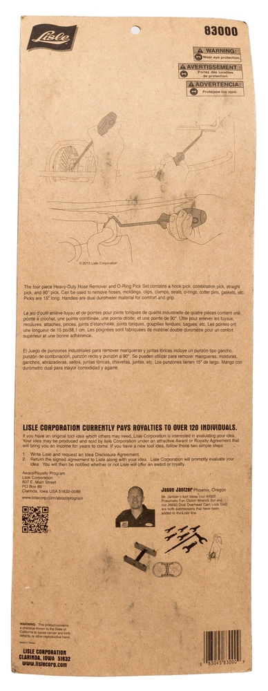 Largest Inventory of Factory Car Audio in the USA! Lisle Heavy Duty O-Ring Hose Gasket Remover 15 Inch Pick Set 4 Pcs Part LIS83000 Lisle Heavy Duty Hose Remover & O-Ring Pick Set A set of four heavy-duty hose tools The four piece heavy-duty hose remover and o-ring pick set contains a hook pick, combination pick, straight pick, and 90° pick Can be used to remove hoses, moldings, clips, clamps, seals, o-rings, cotter pins, gaskets, etc Picks are 15" long Handles are dual durometer material for comfort and grip - Brand New Item - Part Number: LIS83000 90 Day Warranty Included! ---------------------------- ------------------------- 1 Factory Radio is proud to introduce our line of liquidation listings! These are new items that are priced to move. Any cosmetic blemishes are noted in the condition field so please keep that in mind when purchasing. All items are guaranteed to be in 100% working order with our standard 30 day return and 90 day warranty so you’ll still be covered by our top-notch customer service. We’ll be adding new listings to this line every day at limited quantities so be sure to bookmark and keep watch for more great deals! ----------------------------------------------------- This is a Lisle Heavy Duty Hose Remover & O-Ring Pick Set . This item is in NEW condition, with all items included unless otherwise listed. Please see photos for details. As you can see from our reviews, we package and ship everything very carefully. If you have any questions about any item listed, please do not hesitate to reach out. Thank You for Your Purchase! Welcome to our eBay store! To make your purchase as simple and easy as possible, please refer to the store policies listed below. CHECKOUT Click Buy It Now at the top of this listing to immediately proceed with the checkout and payment process. PAYMENT We accept the following forms of payment. PayPal Credit Card Phone Payment SHIPPING Free Shipping to all 50 states! Radios will generally be sent via UPS to the lower 48. Some smaller items and radios going to AK or HI will be sent via USPS Priority or First Class Mail. International purchases are sent First Class International when possible and First Class Priority or UPS International otherwise. Most items are shipped within 1-3 days of processing but there are sometimes short delays due to final testing or build procedures. Please contact if your purchase is time sensitive. CONTACT If you have any questions or concerns before or after purchase, please do not hesitate to contact us M-F 9a to 6p Est. All our products have a 90 day warranty with free live tech support!