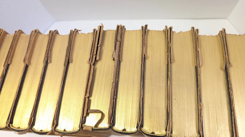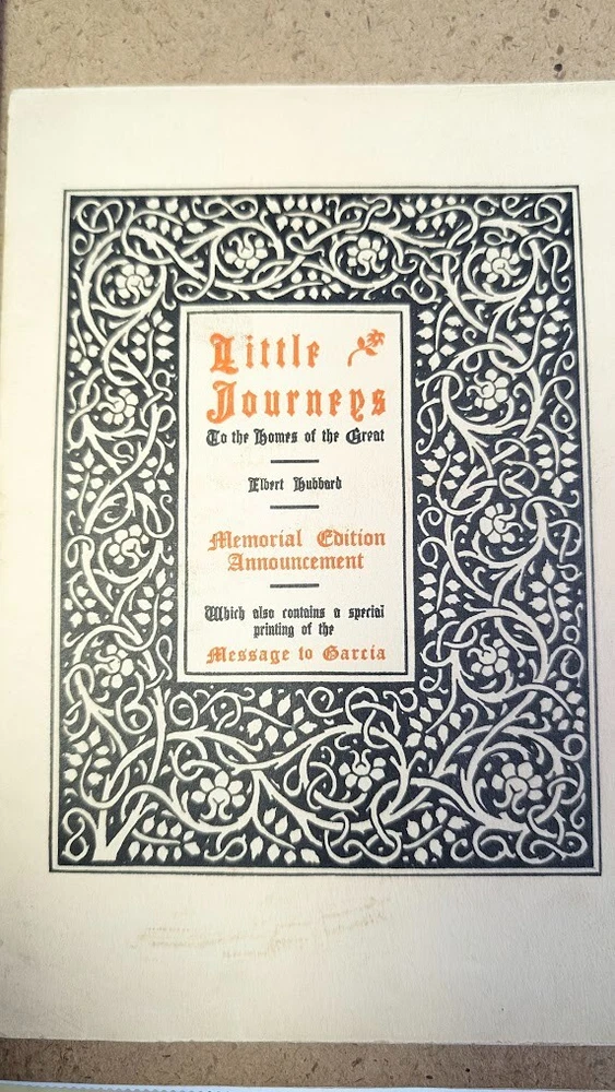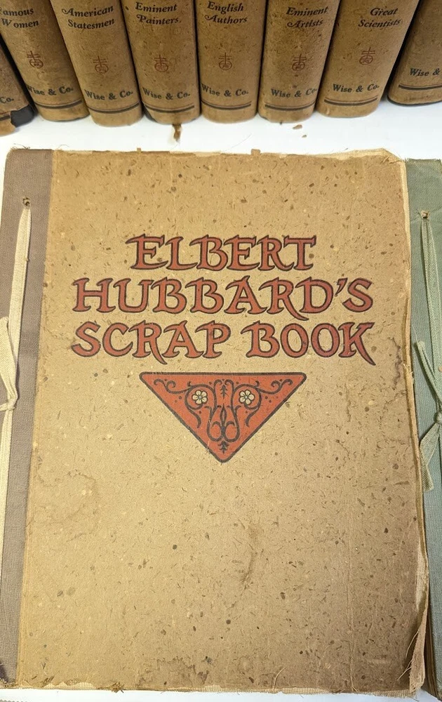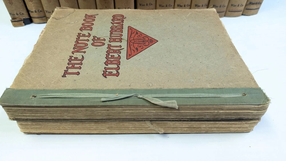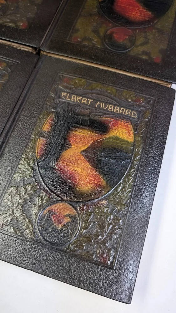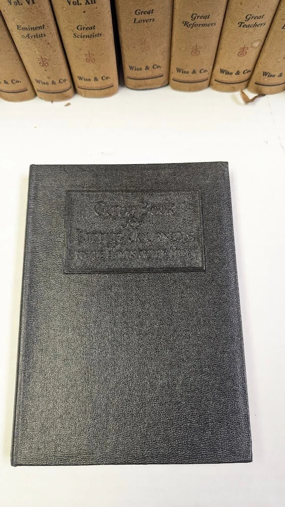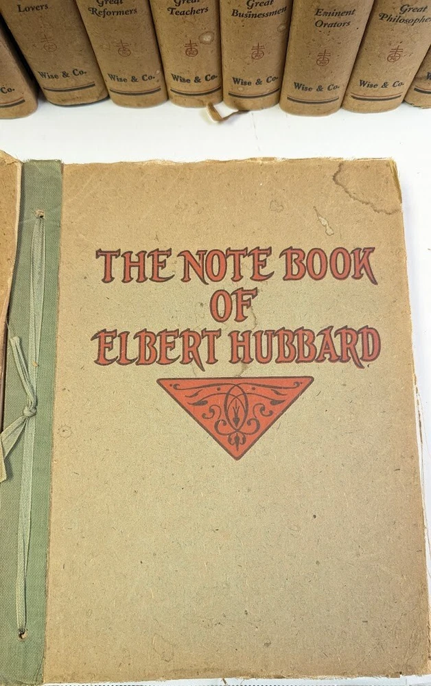 Complete set of 14 little journeys PLUS the guidebook and two notebooks. All leather-bound books come in their original dust jackets and feature gilded, deckle-edged paper. Memorial edition prepared for "Ruth M Wicklein" as seen on the first page of the first volume. Printed in 1916. The accompanying guidebook was printed in 1926. Kept in a climate-controlled room, smoke free home.