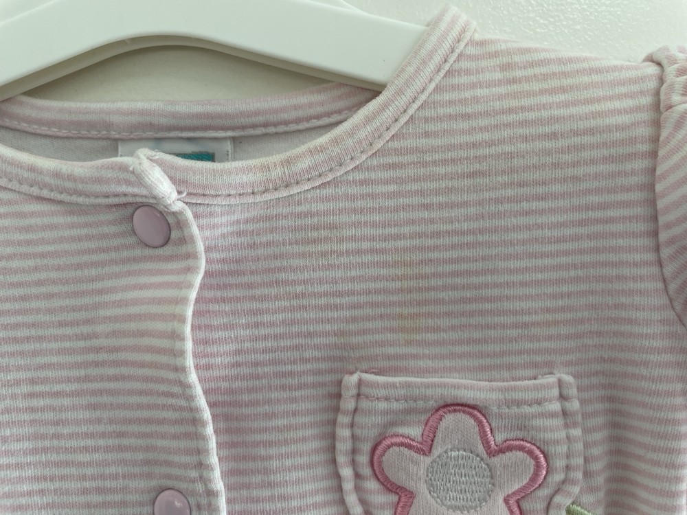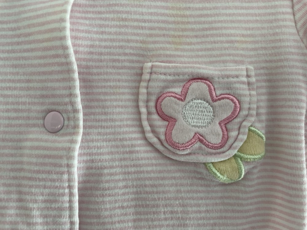 Little Me Baby Girls Embroidered Flower Pocket Striped Cotton 1-Piece Pink 3M. Condition is pre-owned. Smoke free, pet free home. Shipped via USPS Ground Advantage. In very good condition. Free of rips or stains.
