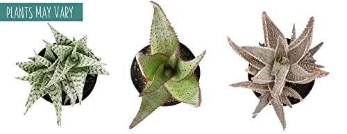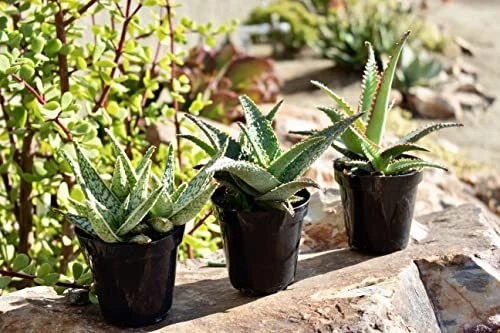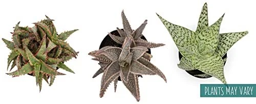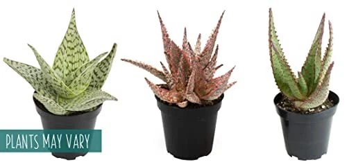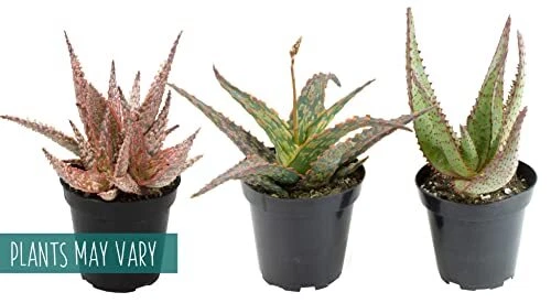 Each order includes 3 fully-rooted Star Aloe plants in 3.5 inch nursery pots. Plants will range in height upon arrival, approximately 7-inches tall from the bottom of the pot. Treat yourself to these rare, low light house plants while they’re available. Our Star Aloe succulents are exclusively bred by Altman Plants. Plants will vary due to seasonal inventory and no specific color is guaranteed due to limited availability. A portion of all purchases help to support local animal shelters and not all plants sold by are pet-friendly. Since Aloe is moderately to dogs and cats, we encourage you to display your new plant in a location that your beloved pets cannot access. Star Aloe are easy to grow and drought-tolerant, making these exotic plants perfect for plant owners of any skill level. Water your Star Aloe approximately once every other week — always allowing the soil to dry in between waterings. Keep this live plant thriving with a well-draining succulent soil potting mix and Aloe vera plant food. Aloe plants need moderate to bright, indirect sunlight and enjoy 55 to 85 degrees Fahrenheit. Never expose them to frost or temperatures below 40 degrees Fahrenheit. Create a show-stopping display by arranging your new plant next to a live Aloe vera plant (closely related to Star Aloe), on a plant stand alongside plant pots with other types of aloe, like a barbadensis-Miller Aloe vera plant, spiral aloe, zebra aloe, etc. You can even use some sphagnum moss for plants to decorate the top of the soil if you like. These succulents plants live and thrive in many different areas of the home because of their low maintenance requirements. Our unique star-shaped aloe plants are vibrant and inviting, making them the perfect choice for green bathroom decor, dark green decor for living room, and much more. Discover Star Aloe. Unlike other aloe, these exotic plants feature a variety of colors and textures. If you like popular plants like rosette succulents and cactus decor, you'll love these. Limited supply available. Our live indoor houseplants immediately ship, often arriving earlier than expected. Your live plants for delivery order includes 3 fully-rooted plants in 3.5 inch nursery pots. Plant color will vary. Give unique plant gifts. Tired of boring birthday gifts and gifts for plant lovers? A Star Aloe birthday gift outshines typical plant lover gifts. These easy plants are also fun party favors. Succulent plants live and thrive with these rare plants. Display with live houseplants like a peace lily, snake plant, ZZ plant, pothos and devil’s ivy. Cactus plants live happily with them, too. Star Aloe can be indoor potted plants and outdoor potted plants. Avoid exposing them to frost and ensure that these succulent plants live outdoors and indoors in bright to moderate sunlight.
