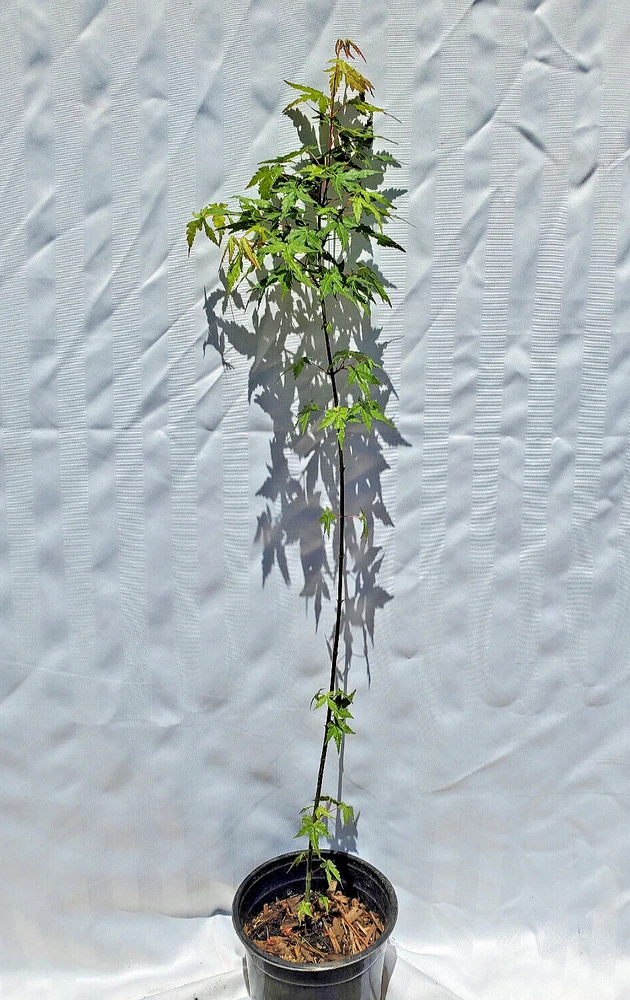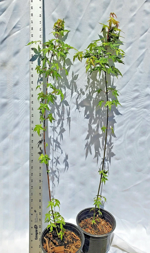 Green Japanese Maple Acer Palmatum in 2 qt nursery pot. THESE TREES ARE NOT GRAFTED ATTENTION DEAR CUSTOMERS: FALL IN EASTERN OREGON IS IN FULL SWING AND OUR TREES HAVE STARTED THEIR AUTUMN TRANSFORMATIONS. Slow to moderate growth rate. Weeping growth habit. Young leaves of this species are sensitive to frost & are not drought tolerant Protect seedling from frost & strong winds Height 15-20 feet Spread 15-20 feet Light full sun to partial shade, leave scrotching happens in hot sun and not enough moisture Best grown in moist, organically rich well drain soil USDA Hardiness Zones 5-9