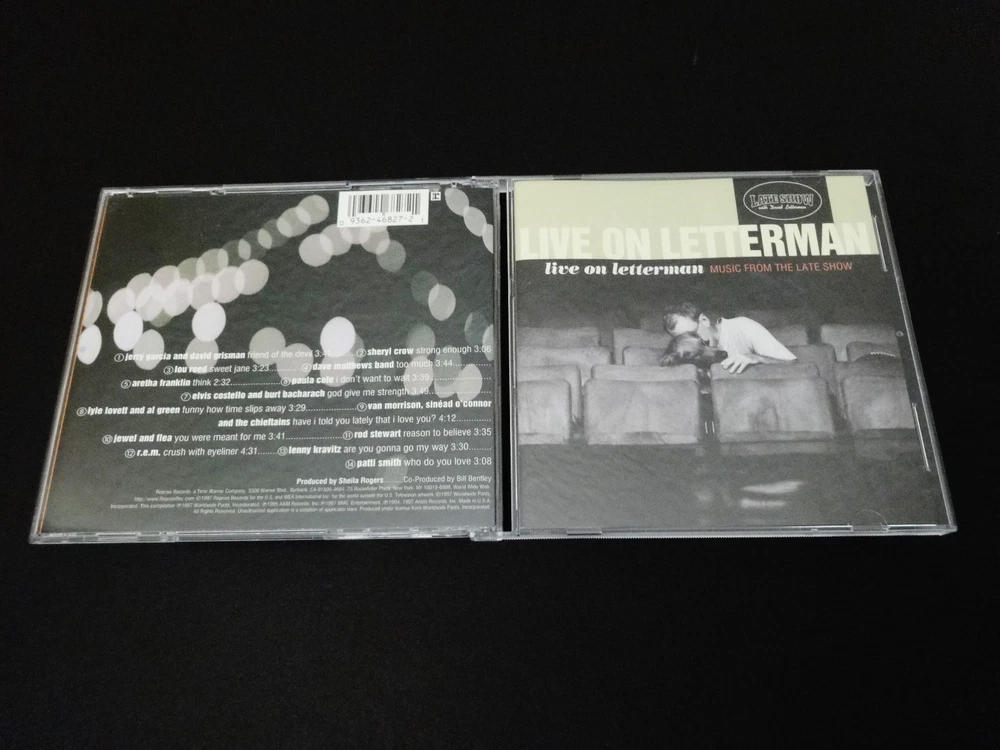 Late Show with David Letterman - " Live On Letterman !! - Music From The Late Show ! " : 1993 - 1997 : CD : Artists Performing Live on TV - on the " Late Show ! " : 1997 Reprise Records ( 9 46827-2 ) " Live On Letterman " ! ... 1993 to 1997 ' Live ' Artists Performances !! - on " The Late Show !! " with David Letterman !!! Letterman !! & " Late Show ! " Fans !!! ... and Jerry Garcia Fans ! too, for that matter - as the " Opening Track ! " on this Fantastic ! 1993 through 1997 " Live " on the Late Show CD features >>> " Friend Of The Devil " by The Grateful Dead ( Jerry Garcia / Robert Hunter ) - Performed ' Live ' on September 15, 1993 ( 9/15/1993 ) at CBS Studios in the Ed Sullivan Theatre by Jerry Garcia & David Grisman ( Garcia & Grisman ) ... for " The Late Show ! " in New York City !! As, it should also be noted that Letterman moved from NBC to CBS just days before this 1993 Garcia & Grisman performance (on August 30, 1993 ( 8/30/1993 ) ) - making it one of the very-first from the " CBS " Letterman Era ! And, as you can see from the Liner Notes on this Awesomely-Historic ! Live Music CD ! ... Dave was indeed really rolling in the talent - for certain - the likes of >>> Lou Reed - Van Morrison ( Van Morrison - Sinead O'Connor & The Chieftains ) - Rod Stewart - Al Green ( Lyle Lovett & Al Green ) - Aretha Franklin - R.E.M. - Patti Smith - Sheryl Crow - Jewel & Flea ( of the Red Hot Chili Peppers ) - Elvis Costello ( Elvis Costello & Burt Bacharach ) - Dave Matthews Band - Lenny Kravitz - & Paula Cole. So, a nice " Who's Who " for certain in the Music Business - with all of these " Late Show " performances ranging from 1993 ! through 1997 ! So, a very-nice snap-shot of time too ... from the Mid 1990's ! Check out the track listings provided - as this-one is most definitely a Joy ! to the ears. I originally purchased this one solely for the rare 9/15/93 Garcia & Grisman " Friend Of The Devil " Track - but, then indeed ended up really enjoying this whole entire CD ... as Music Fans ! - there is some Serious-Talent ! on here - all throughout ... and giving their " All " too - being that after all ... it is for Dave !! - right-on the " Late Show !!! ". And dang - do I sure miss it ... Enjoy !!!!! TRACK LISTING >>> Jerry Garcia & David Grisman : Friend Of The Devil : 9/15/1993 Sheryl Crow : Strong Enough : 2/16/1995 Lou Reed : Sweet Jane : 1/5/1994 Dave Matthews Band : Too Much : 5/17/1996 Aretha Franklin : Think : 3/15/1994 Paula Cole : I Don't Want To Wait : 8/27/1997 Elvis Costello & Burt Bacharach : God Give Me Strength : 2/25/1997 Lyle Lovett & Al Green : Funny How Time Slips Away : 4/19/1994 Van Morrison, Sinead O'Connor & The Chieftains : Have I Told You Lately That I Love You ? : 5/17/1995 Jewel & Flea : You Were Meant For Me : 9/2/1996 Rod Stewart : Reason To Believe : 9/29/1993 R.E.M. : Crush With Eyeliner : 6/23/1995 Lenny Kravitz : Are You Gonna Go My Way : 9/9/1993 Patti Smith : Who Do You Love : 2/14/1997 Item Condition : This Rare Out of Print ( 1997 Reprise Records ) Live On Letterman - Music From The Late Show with David Letterman CD ( 1-CD ) is in Very Good condition - close to Like New overall. CD ( 1-CD ) is in Very Good condition - close to Very Good/Like New, with a few faint light marks on the playing surface (cosmetic-only) - please see photos. Liner Notes ( Quad Fold-Out ( 8-Pages ) ) is in Like New (Near Mint/Mint!) condition (please see photos). CD Case ( 1-CD Clear Jewel Case ) is in Like New (Near Mint/Mint!) condition (please see photos). This CD has been very-carefully stored next to other CD Cases inside my professional CD rack. Please see all photos provided. Photos included are of the actual item you will receive. 1993 to 1997 ! ... ' Live ! ' on the " Late Show!! " with David Letterman !!! ... Enjoy !!!!! Please ask any questions before bidding/buying & Best of Luck ! ( also ... feel free to click the 'see other items' button above to check-out my other related live listings - Thanks ! ) U.S. & International buyers welcome (additional shipping charges & delivery time will apply for international destinations). Shipping charges include delivery confirmation on every item. Returns accepted within 14 days of purchase if item is returned unused & undamaged (buyer pays return shipping). All items will be shipped as merchandise with the winning bid entered as item value (2023-2024).