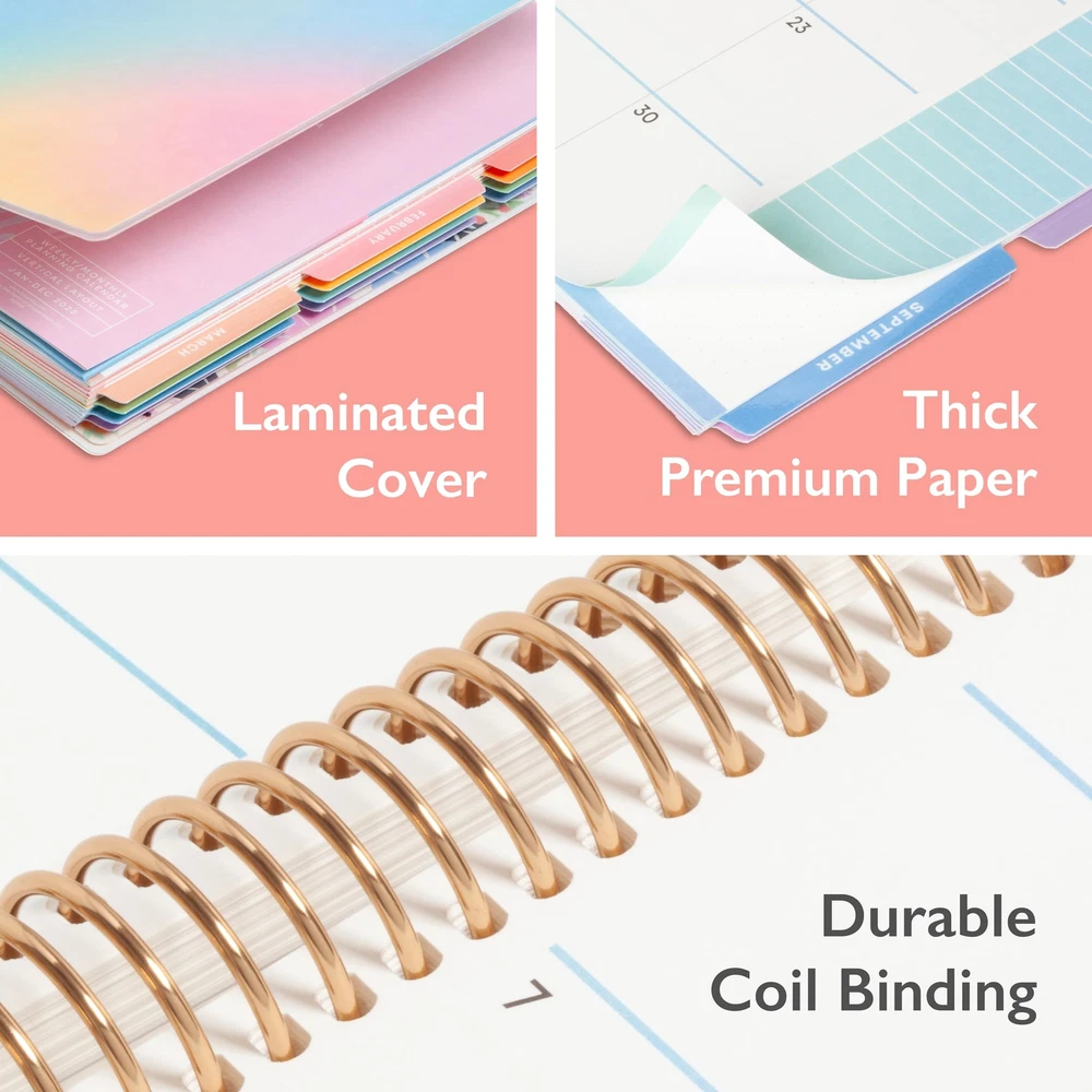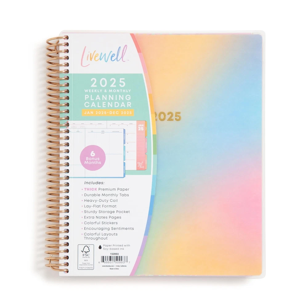 LiveWell for Blue Sky 2025 Weekly and Monthly Planner, January – December, 7” x 9”, Flexible Cover, Thick Premium Paper, Laminated Tabs, Heavy Duty Coil Binding, Beck Design Plan your year in style with the soothing color palette of the 2025 Livewell Beck Planner. This stylish weekly and monthly planner will keep you organized everywhere you go. Simple page designs add a touch of sophistication and offer plenty of room for everything that makes up your day. Designed with practicality and ease of use in mind, this academic agenda's monthly calendar views offer ample writing space for long-term planning and feature durable tabs for easy access to each month’s plans. Paper sourced from responsibly managed forests provides clean writing space for jotting down your appointments, to-dos and reminders. Use this dated academic planner to keep track of your appointments, and to write down notes and ideas in one place. Durably coated and colorful tabbed dividers are long lasting and make accessing information a breeze. Quality covers and gold twin-wire binding provide reliable durability for daily use. Stay on track throughout the academic year with this 7” by 9” planner dated January 2025 - December 2025. Mix and match with other Livewell planning products from Blue Sky to organize your daily life. Blue Sky creates modern and sophisticated organizational planners and calendars to fit the scheduling needs of busy people - whether it’s for business professionals, college students, teachers, or anyone with appointments to make note of. Keep your life organized with our full line of products including desk pad calendars, wirebound tabbed weekly and monthly planners with contacts and notes pages to accommodate your scheduling needs, and laminated two-sided wall calendars, all in a variety of colors and patterns to suit your lifestyle and personality. January 2025 - December 2025 stylish planner with monthly and weekly pages for easy planning and scheduling; additional pages allow for future planning Monthly view pages contain space for big picture planning, and a notes section for important projects; Major holidays are listed for convenience while colorfully printed pages elevate your experience This calendar planner includes reference pages, contacts pages and extra notes pages to accommodate your scheduling needs Weekly calendar pages feature minimalistic page designs for a touch of minimalism with notes sections, dot grids and plenty of room for all of your important information Printed on FSC-certified paper for clean writing space, with premium quality covers in a beautiful ombre design and durable, coated tabs that withstand constant use throughout the year Shipping from the USA All of our products are shipped from the USA, ensuring quick delivery to your destination. Payment We offer the following payment methods: PayPal, credit card, bank transfer, and eBay's secure payment system. Free Shipping & Free Returns Shipping within the USA is FREE. Additionally, any return is absolutely free for you. Risk-Free Purchase You have the option to return an item within 30 days without any justification. We cover the return shipping costs! Fast Shipping We ship immediately upon receipt of payment. Generally, the package is delivered within 2-3 days in the USA. If it takes longer, we will contact you. Quality and Costs Made in Europe, USA, China No customs fees or additional charges Total satisfaction guarantee Invoice with declared VAT available upon request in .pdf format Feedback Your feedback is very important to us. After you pay for your purchase, you will automatically receive positive feedback from us.