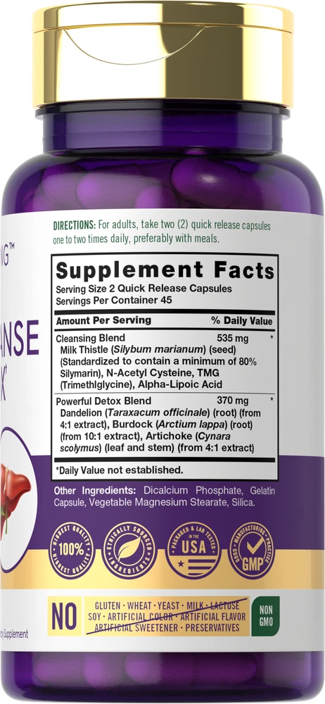 Supplementing with Nutrients: Receiving beneficial nutrients is key for men and women looking to lead a healthy lifestyle. However, it's often hard to incorporate essential vitamins and minerals into your daily diet, which is why many people turn to a supplement for additional benefits. A Cleanse and Detox* supplement for example, can now be found in many forms such as tea, liquid extract, pills, bulk powder, capsules and more. Carlyle Liver Cleanse & Detox*: Carlye's powerful Liver Cleanse & Detox* formula is packed with ingredients like Milk Thistle, Dandelion and Burdock Root, Artichoke, N-Acetyl Cysteine (NAC), and ALA, making it an exceptional blend. Quick release capsules are gluten free and non-GMO, made with no artificial sweetener or preservatives, a top-quality choice for adults seeking additional support! Rooted in Wellness: Our expertise in sourcing the purest ingredients combined with advanced technologies makes us proud to deliver premium, honest supplements at the best value. Carlyle Liver Cleanse & Detox* is a testament to our commitment to excellence, made with powerful ingredients rooted in wellness. Thanks for choosing us in your pursuit of living healthy. *These statements have not been evaluated by the Food and Drug administration. This product is not intended to diagnose, treat, cure, or prevent any disease. WARNING: Not intended for use by persons under the age of 18. If you are pregnant, nursing, taking any medications or have any medical condition, including gallbladder or bile duct problems, consult your doctor before use. Avoid this product if you are allergic to ragweed or daisy-like flowers. If any adverse reactions occur, immediately stop using this product and consult your doctor. If seal under cap is damaged or missing, do not use. Keep out of reach of children. Store in a cool, dry place.