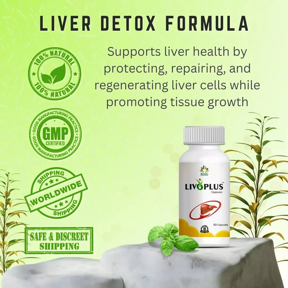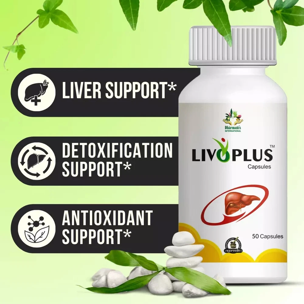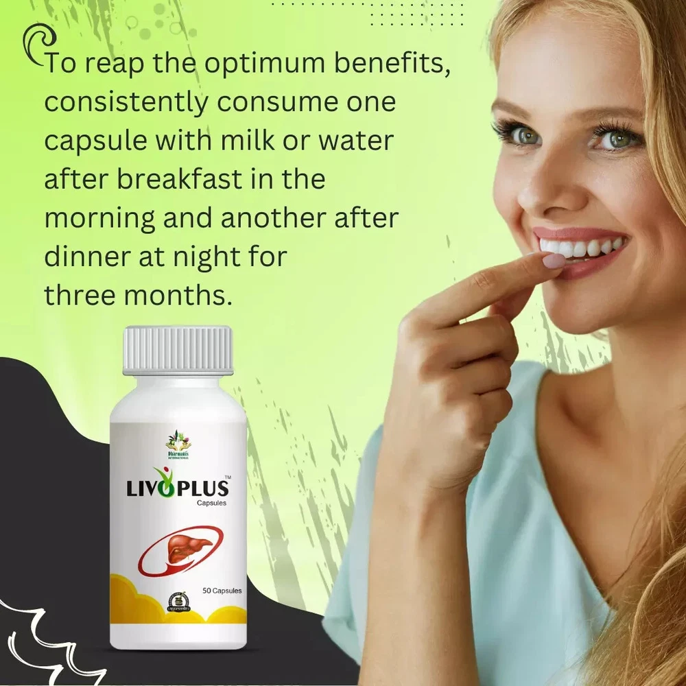 Livoplus capsule with its powerful liver toning herbs ensure optimum liver function through the protection of the hepatic parenchyma, and by way of its potent antioxidant properties, it acts as a powerful detoxification agent. Livoplus capsule neutralizes all kinds of toxins from the food, water, air and medications, all sources of detrimental effects on the liver. Counteracting those hard-to-avoid toxins and therefore protecting one of the body's most important organs, Livoplus capsule has massive health benefits for everyone. Its balanced combination prevents liver diseases and helps maintain good health. Livoplus capsule is one of the most effective liver support formulas. Alcohol users in particular found Livoplus capsule helpful in maintaining a healthier liver. Livoplus capsule facilitates rapid elimination of acetaldehyde, the toxic intermediate metabolite of alcohol metabolism, and ensures protection from alcohol-induced hepatic damage. It diminishes the lipotropic activity in chronic alcoholism, and prevents fatty infiltration of the liver. In pre-cirrhotic conditions, Livoplus capsule arrests the progress of the disease and prevents further liver damage. Livoplus capsule is all-natural, complex multi-ingredient formula. It is safe and effective in protecting the liver against harmful toxins from drugs, alcohol, food and water. Livoplus capsule helps regulate levels of enzymes and optimizes assimilation. Livoplus capsule has also been found to be associated with an increase in serum albumin, which is another indication of the liver protection it provides. It also has cholesterol-regulating action and helps maintain healthy levels of serum cholesterol, lipoproteins, phospholipids and triglycerides. Livoplus capsule is the ONLY natural and safe solution to cleanse and detoxify the liver! You can expect the following from Livoplus capsules: Improves the functional efficiency of the liver Increases bile secretion and support a healthy liver Neutralizes toxins from food, water, air and medications 100% herbal, affordable and effective No chemicals, no negative side effects Livoplus capsule is all-in-one powerful herbal liver support supplement. It is formulated from the time tested ayurvedic herbs that help strengthen the liver. It is helpful in preventing and protecting the liver from alcoholic liver disease, enlargement of liver, cirrhosis of liver and hyperacidity, hepatitis and jaundice, viral hepatitis, pre-cirrhotic conditions and early cirrhosis, protein energy malnutrition, anemia and dyspepsia and loss of appetite or anorexia. Ingredients Livoplus capsule is a natural formulation of the finest herbs that work highly effectively against alcoholic liver disease, enlargement of liver, cirrhosis of liver, hepatitis and jaundice, viral hepatitis, pre-cirrhotic conditions and early cirrhosis, protein energy malnutrition and loss of appetite. The natural ingredients that are used in this supplement are the highest quality and purest form to provide an ideal all-around solution for optimum liver functioning. Each pack of Livoplus capsule contains 50 capsules. Livoplus capsules consist of the following potent ingredients: Kantkari (Solanumxanthocarpu), Amrta (Tinispora Cordifolia), Makoy (Solanum Nigrum), Kasni (Cichorium Intybus), Palihari (Tephrosia Purpur), Arjun (Terminalia Arjuna), Mandur Bhasam, Kasmard (Cassia Occidentalis), Santhi (Boerhaavia Diffusa), Bhangra (Eclipta Alba), Bhui Aamla (Phyllanthus Niruri), Aamla (Phyllanthus Emblica), Daru Hald (Berberis Aristata), Chitrak (Plumbago Zeylanica), Vaivading (Emblica Ribes), Haritki (Terminalia Chebula) Frequently Asked Questions What is Livoplus capsule? Livoplus capsule is a unique combination of valuable herbs such as boerhaavia diffusa, tinospora cordifolia, etc. Livoplus capsule is an effective herbal remedy for liver diseases and disorders such as alcoholic liver disease, hepatitis and jaundice, enlargement of liver, cirrhosis of liver, viral hepatitis, pre-cirrhotic conditions and early cirrhosis, protein energy malnutrition and loss of appetite. Can I use Livoplus capsule? If you are looking for a natural and safe solution to prevent liver diseases and to maintain healthy liver functioning, then this product is for you. Livoplus capsules help in the prevention: 1. Viral hepatitis 2. Alcoholic liver disease 3. Pre-cirrhotic conditions and early cirrhosis 4. Protein energy malnutrition 5. Loss of appetite 6. Radiation and chemotherapy-induced liver damage In addition to taking Livoplus capsules, eliminate alcohol and smoking completely. Include fresh fruits, juices and vegetables in your diet and drink plenty of water. Is Livoplus capsule safe? Livoplus capsule has been prepared with the foremost care and detail. The herbs that went into the preparation of this product are the safest and most renowned. We follow stringent International standards in safety and hygiene in the preparation of our products. What is the dosage? Take 1 or 2 capsules twice daily with water after meals. Always follow a regular course of Livoplus capsule for 2 to 3 months to achieve optimum results. Will there be any problem if I miss a dose? If you have missed a dose, then take it as soon as you remember. Follow the course in a disciplined manner to achieve strong and permanent results. How long will it take before I begin to notice results? Typically most people will see results in 3 to 6 weeks. It is suggested that you start with a two months supply to achieve maximum benefit from this herbal product. Each pack of Livoplus capsule contains 50 capsules. 4 packs of it will last for two months. If you have missed a dose, then take it as soon as you remember. Follow the course in a disciplined manner to achieve best results. Will my privacy be respected? Your privacy is of prime concern and will be given maximum priority. Your order will be shipped to you in Discreet Plain Packet and follows International regulations that are the norm in the shippin
