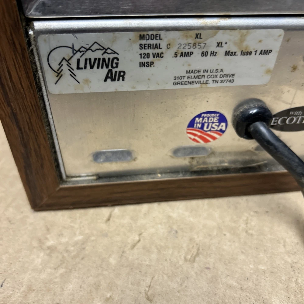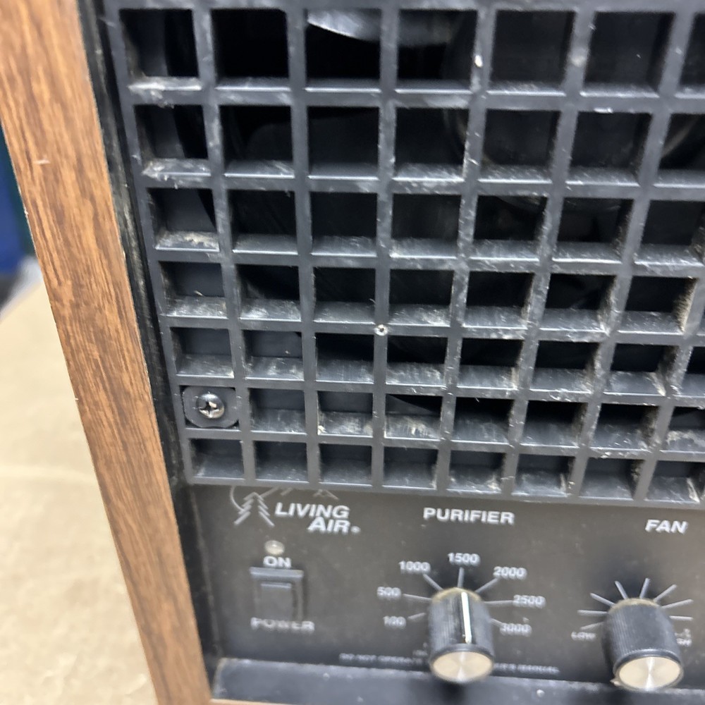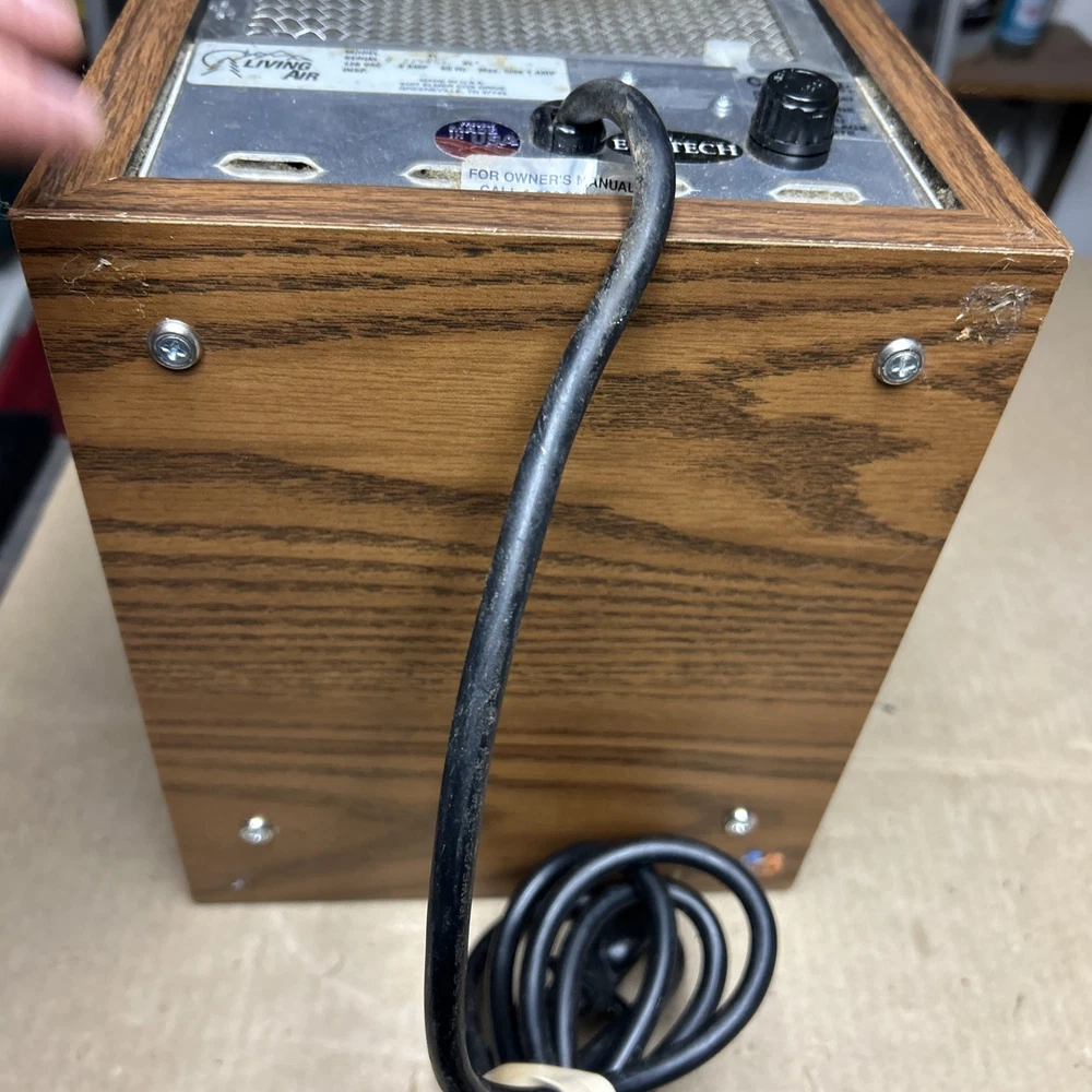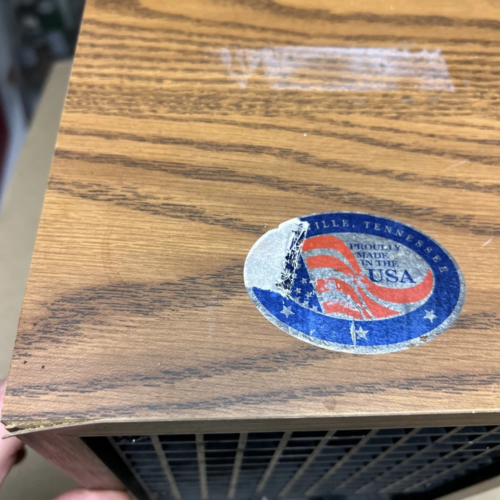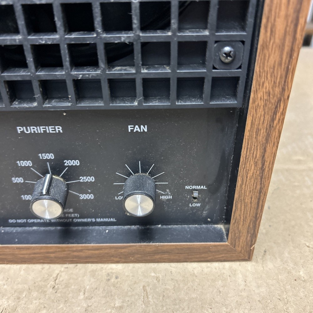 The item was tested and worked well. The item has some signs of wear and use. The grill and fan have some dust and debris in them. The back filter has a lot of wear and will probably need replaced. The inside of the back has some wear. The top corner of the wood has some wear and separation of the wood finish. The wood finish has some wear around the item. See pictures to see the item.