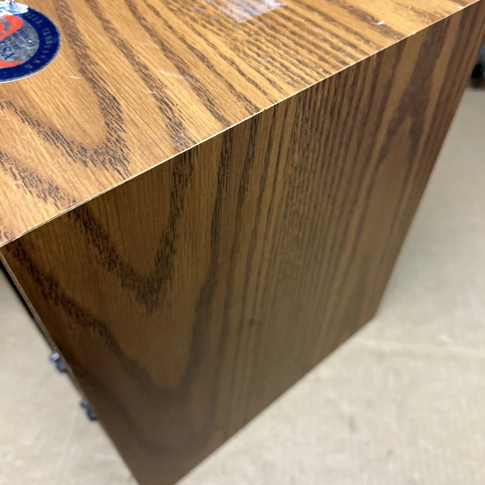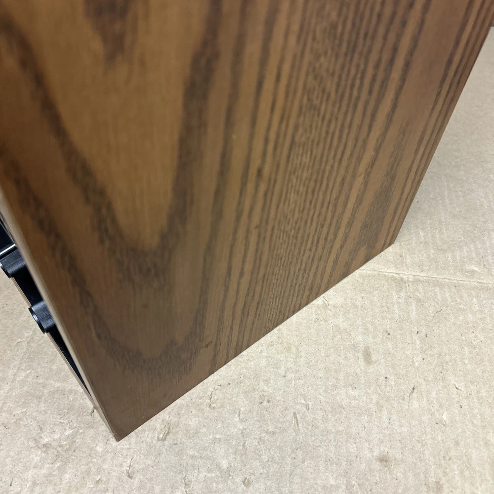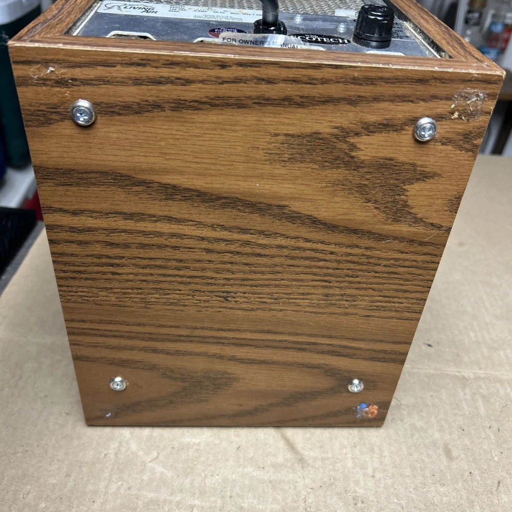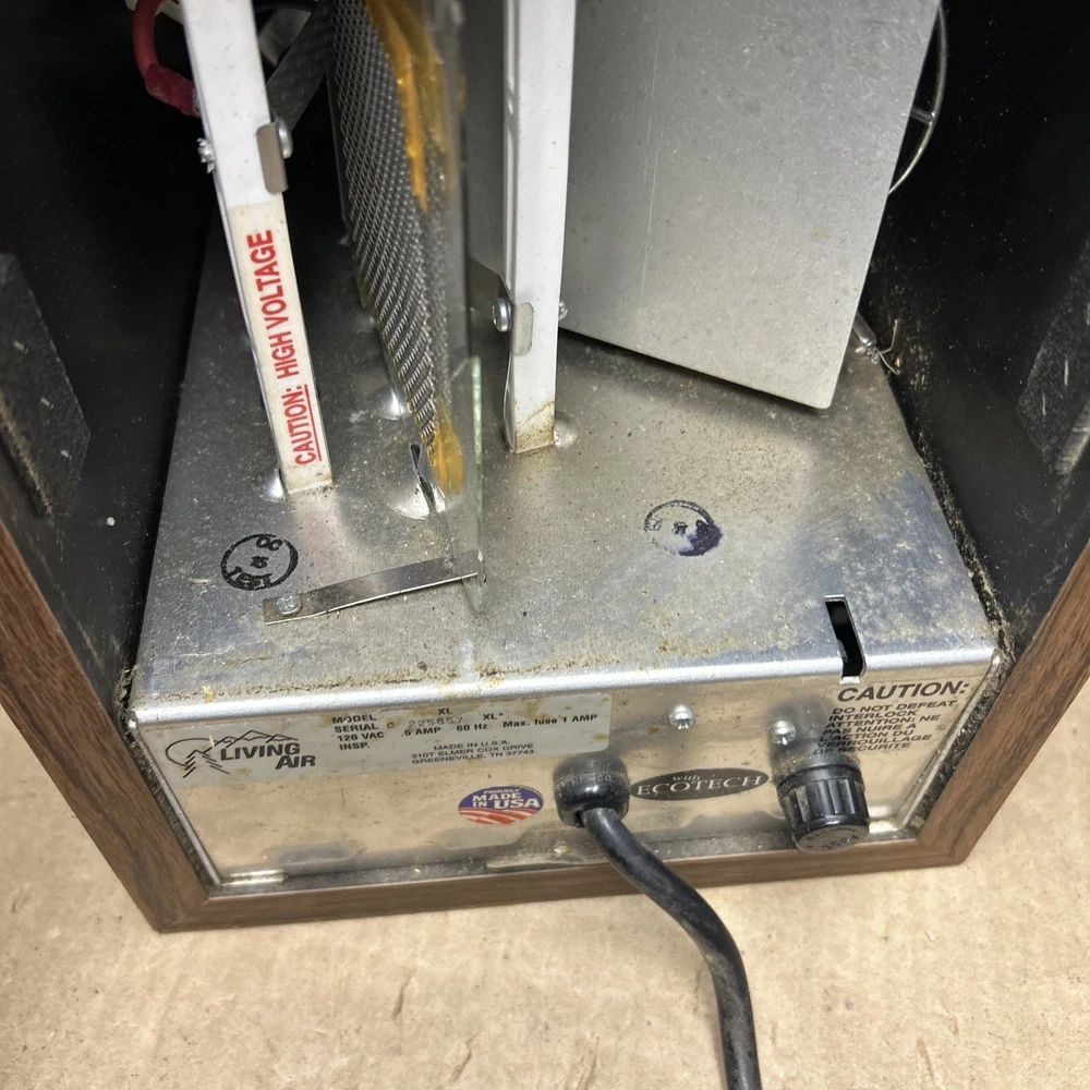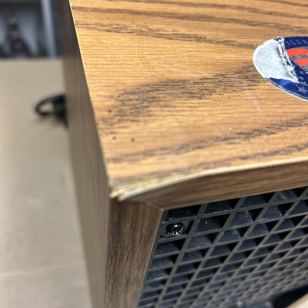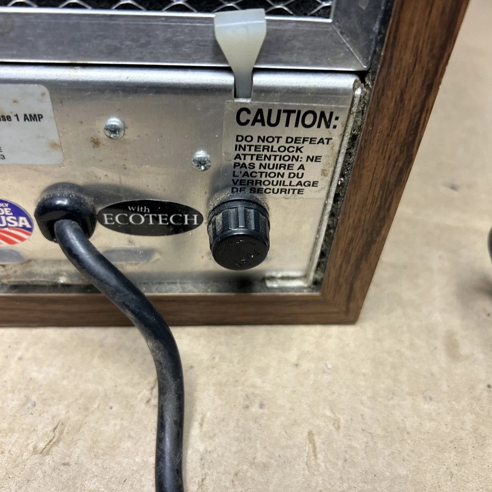 The item was tested and worked well. The item has some signs of wear and use. The grill and fan have some dust and debris in them. The back filter has a lot of wear and will probably need replaced. The inside of the back has some wear. The top corner of the wood has some wear and separation of the wood finish. The wood finish has some wear around the item. See pictures to see the item.