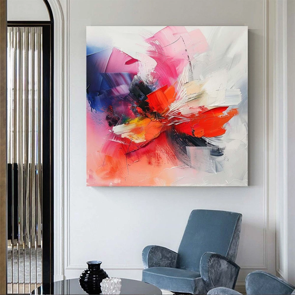 Living Room Abstract oil Painting on Canvas red Art Hand Painted Thick Texture