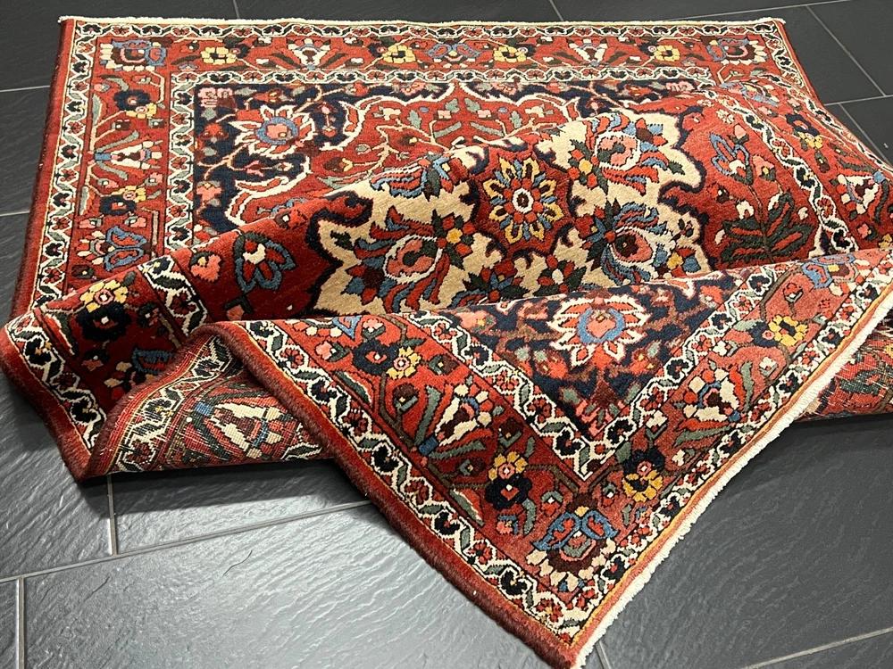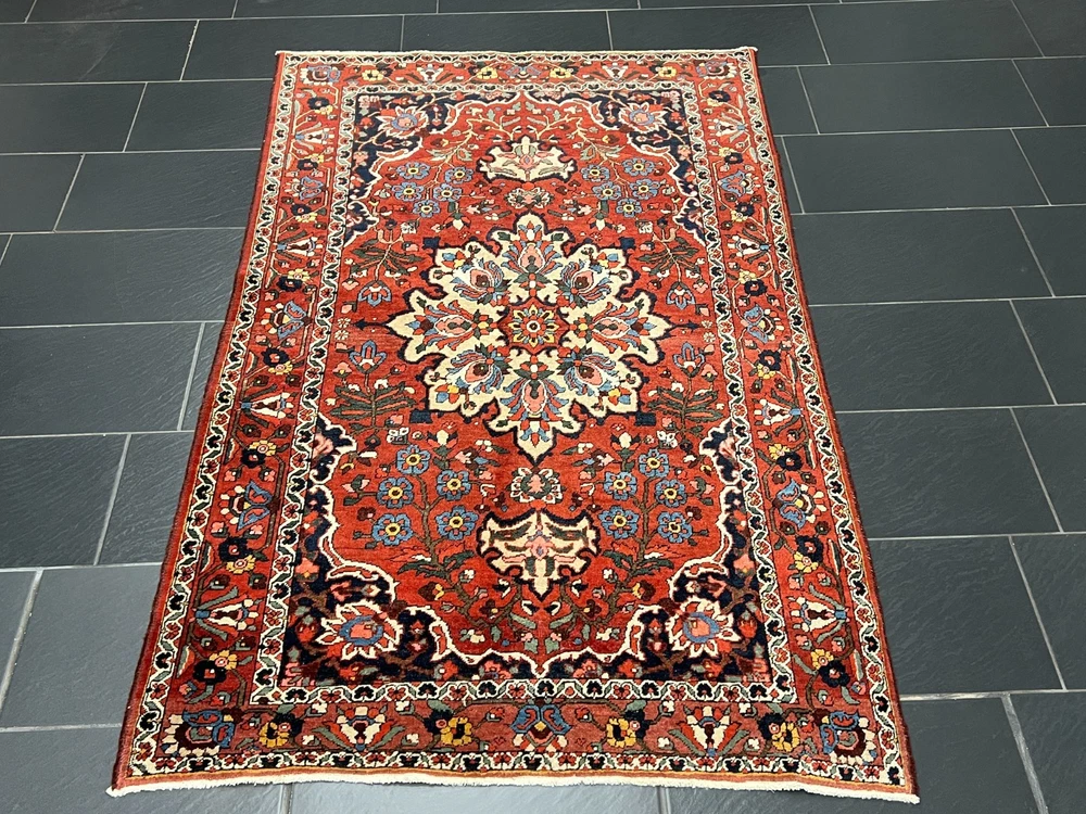 Angeboten wird ein handgeknüpfter Orientteppich Bitte betrachten Sie den Teppich mit Geduld und Aufmerksamkeit. Jeder handgearbeitete Teppich ist in seiner Zeichnung, Schönheit und Farbharmonie einmalig und deshalb ein Kunstwerk für sich. Herstellung: Handgeknüpft Maße: 205x135 cm Flor: Wolle Kette: Baumwolle interne Nummer: 4424 Echtes handgeknüpftes Unikat! ✓ mit Echtheitszertifikat! ✓ Zustand: Der Teppich ist in einem guten Gesamtzustand - Siehe Bilder. Pflegehinweise: Da es sich um einen gebrauchten Teppich handelt, empfehlen wir eine Reinigung, um seine Schönheit zu bewahren. Normalreinigung für 24,90 € pro m² Luxusreinigung für 29,90 € pro m² Gerne erstellen wir Ihnen ein individuelles Angebot für eine professionelle Teppichreinigung. Wenn sie sich für eine Reinigung entscheiden, dann geben Sie uns bitte VOR der Bezahlung Bescheid, indem sie uns eine Nachricht schreiben, damit wir ihre Rechnung anpassen. Weltweiter versicherter Versand mit UPS, GLS und DHL.