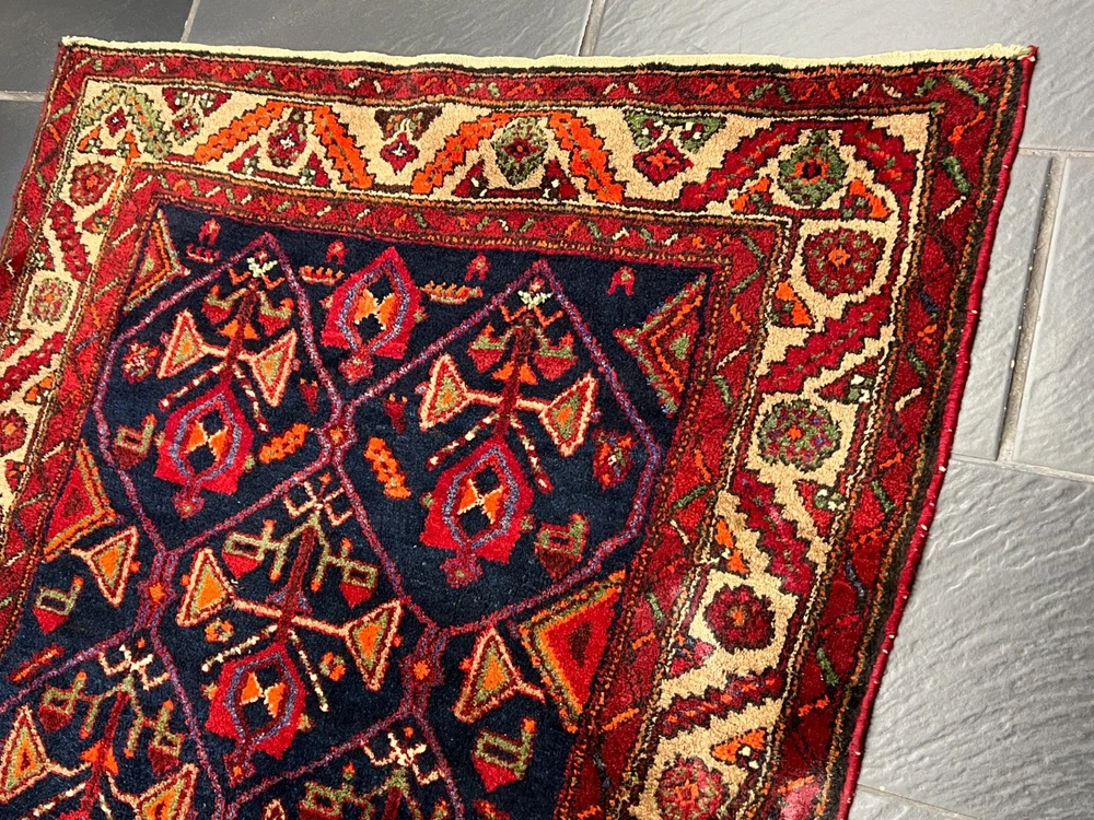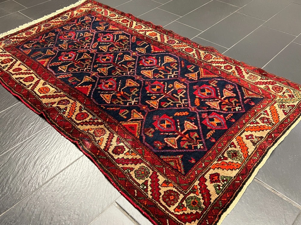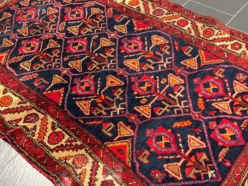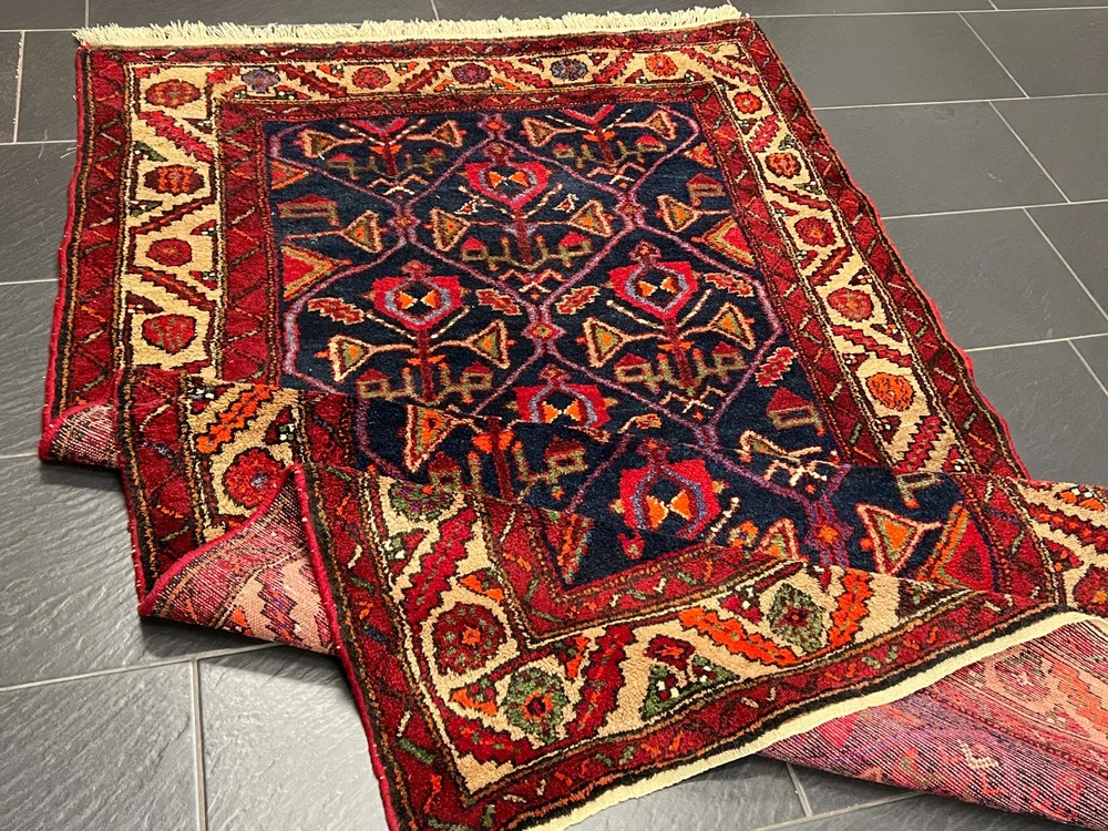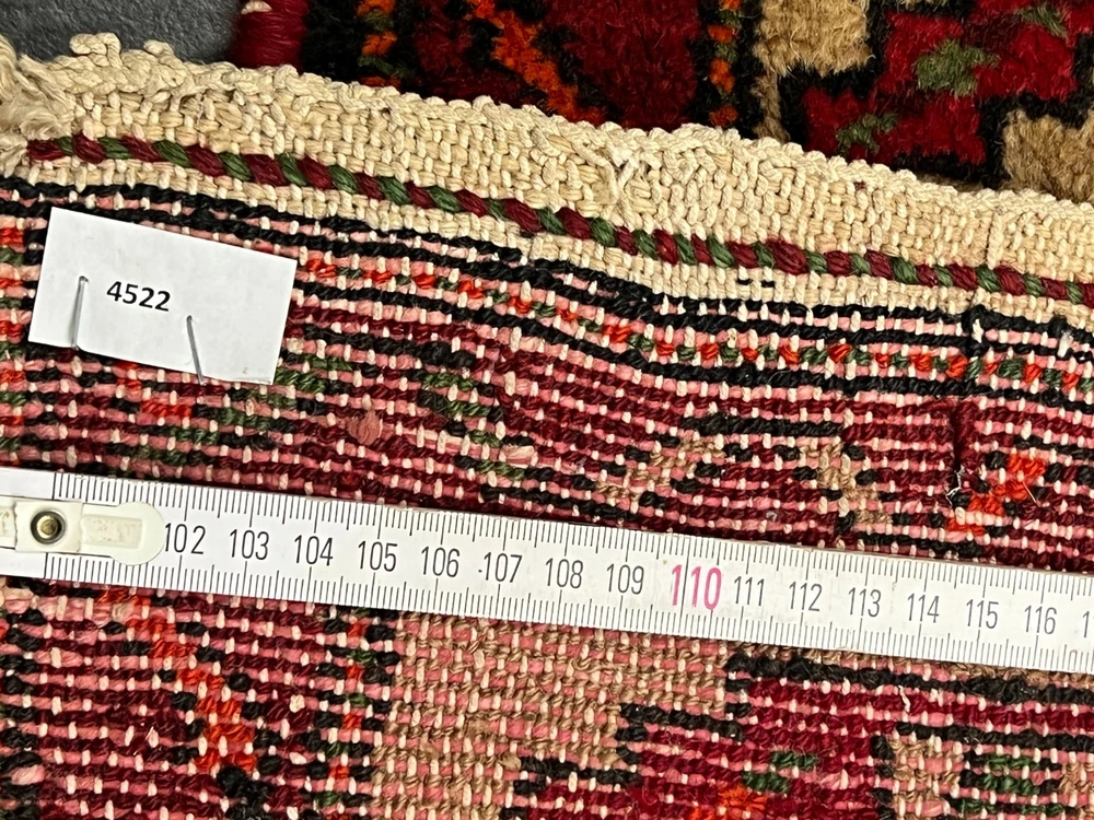 Angeboten wird ein handgeknüpfter Orientteppich Bitte betrachten Sie den Teppich mit Geduld und Aufmerksamkeit. Jeder handgearbeitete Teppich ist in seiner Zeichnung, Schönheit und Farbharmonie einmalig und deshalb ein Kunstwerk für sich. Herstellung: Handgeknüpft Maße: 220x130 cm Flor: Wolle Kette: Baumwolle interne Nummer: 4522 Echtes handgeknüpftes Unikat! ✓ mit Echtheitszertifikat! ✓ Zustand: Der Teppich ist in einem guten Gesamtzustand - Siehe Bilder. Pflegehinweise: Da es sich um einen gebrauchten Teppich handelt, empfehlen wir eine Reinigung, um seine Schönheit zu bewahren. Normalreinigung für 24,90 € pro m² Luxusreinigung für 29,90 € pro m² Gerne erstellen wir Ihnen ein individuelles Angebot für eine professionelle Teppichreinigung. Wenn sie sich für eine Reinigung entscheiden, dann geben Sie uns bitte VOR der Bezahlung Bescheid, indem sie uns eine Nachricht schreiben, damit wir ihre Rechnung anpassen. Weltweiter versicherter Versand mit UPS, GLS und DHL.
