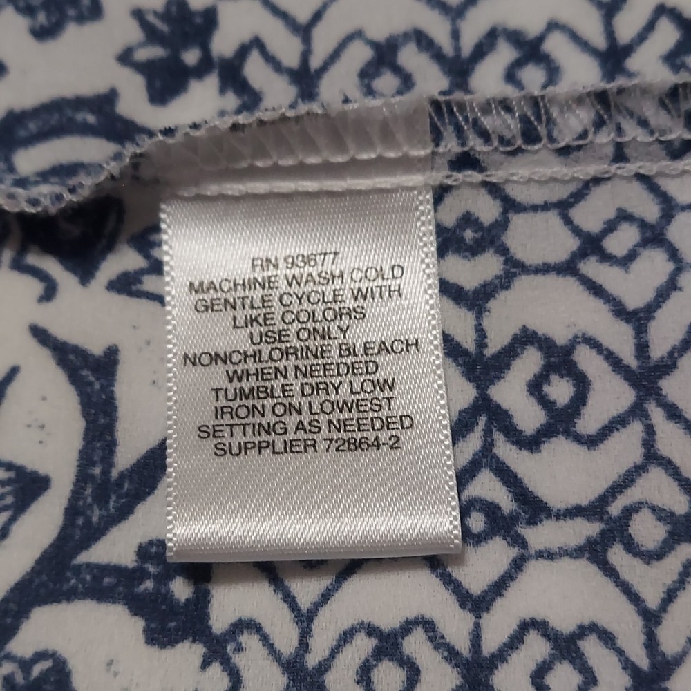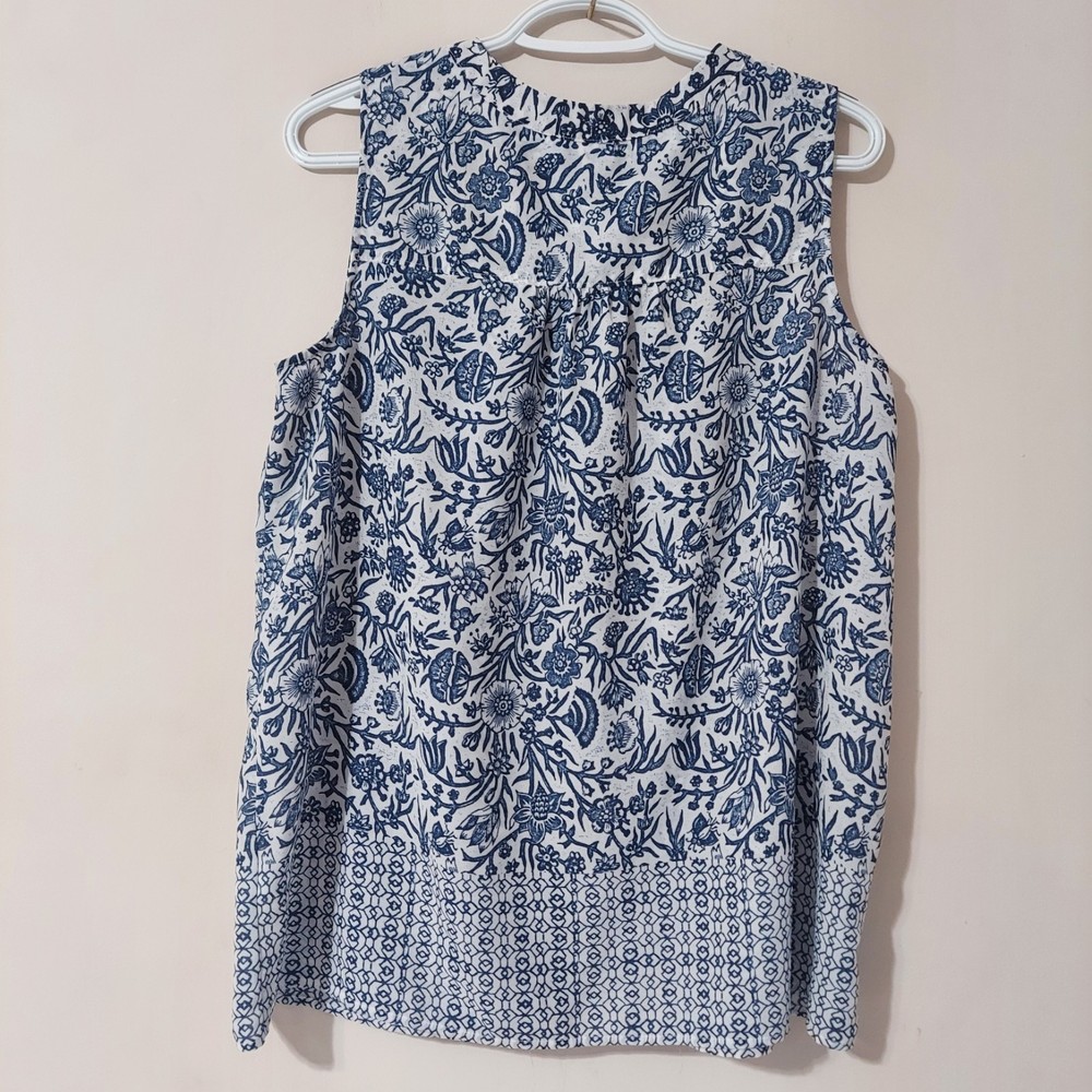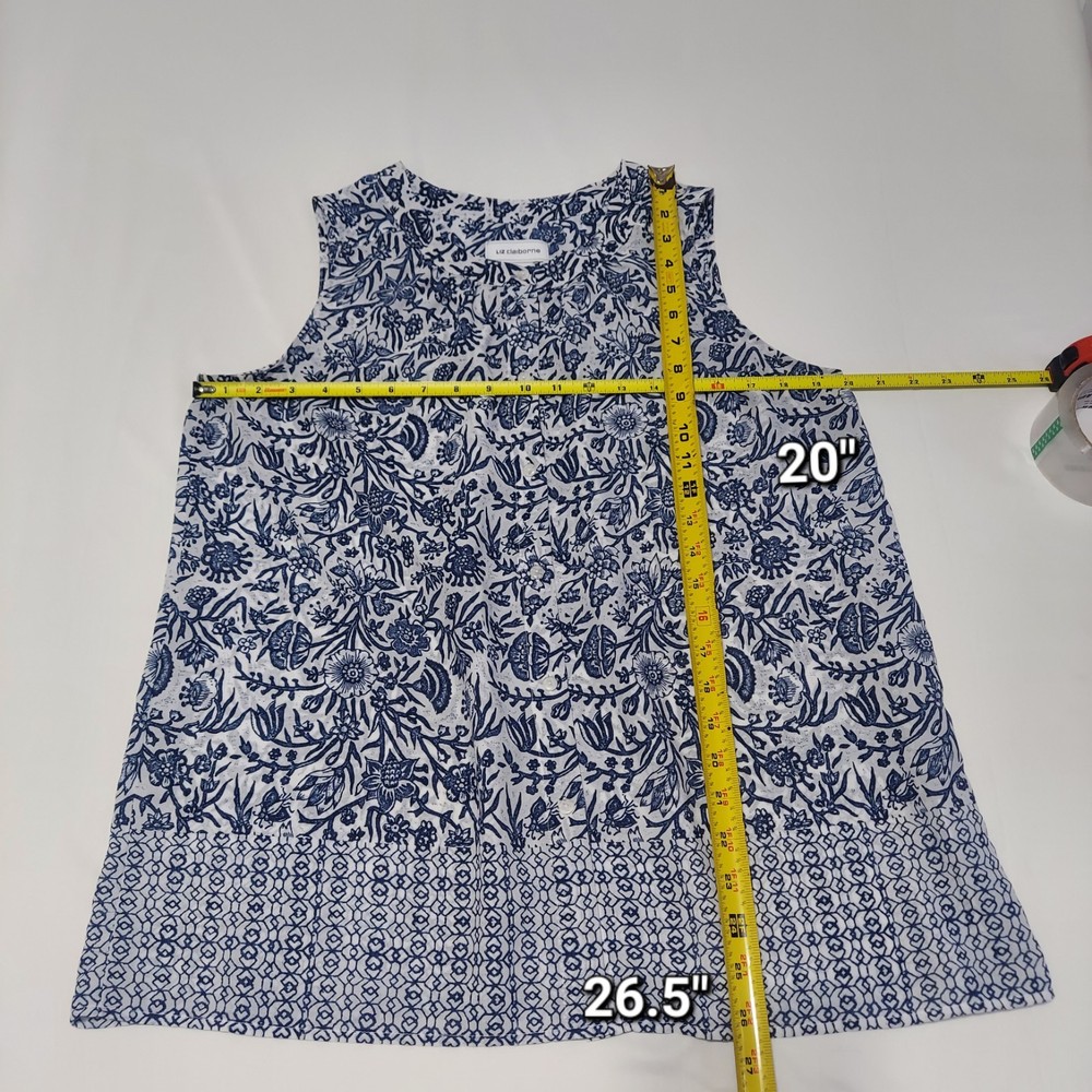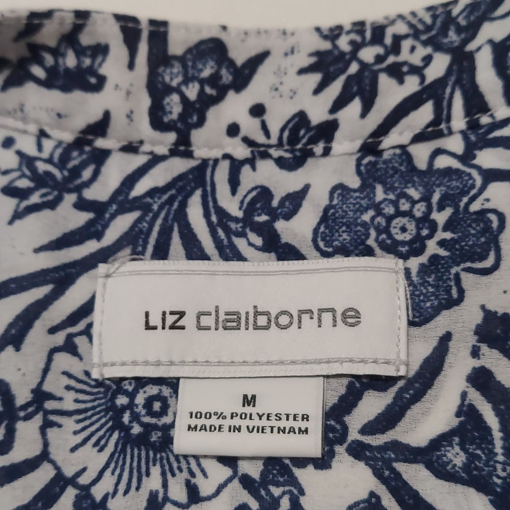 This Liz Claiborne Women's Sleeveless Button Down Floral Polyester Top in size Medium is a stylish and versatile addition to any woman's wardrobe. The blue floral pattern adds a feminine touch, perfect for casual occasions during the summer season. Made from lightweight and breathable polyester material, this tunic-style top features a round neck, button closure, and is machine washable for easy care. The regular fit and sleeveless design make it comfortable and easy to wear for everyday wear. The brand's reputation for quality ensures a durable and fashionable piece.