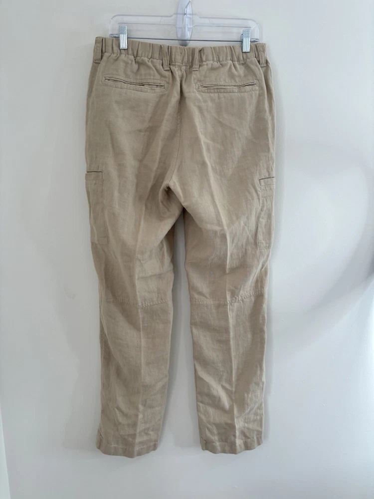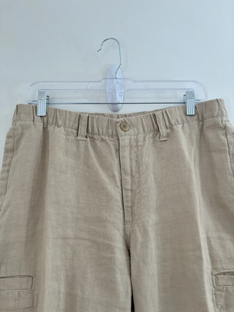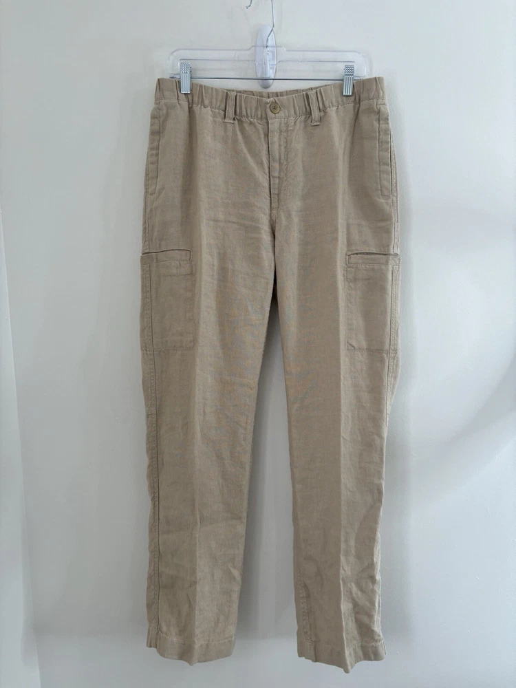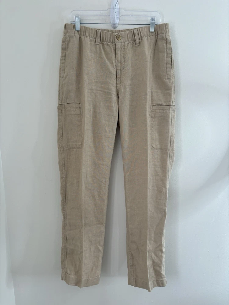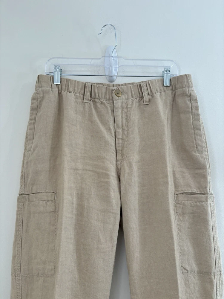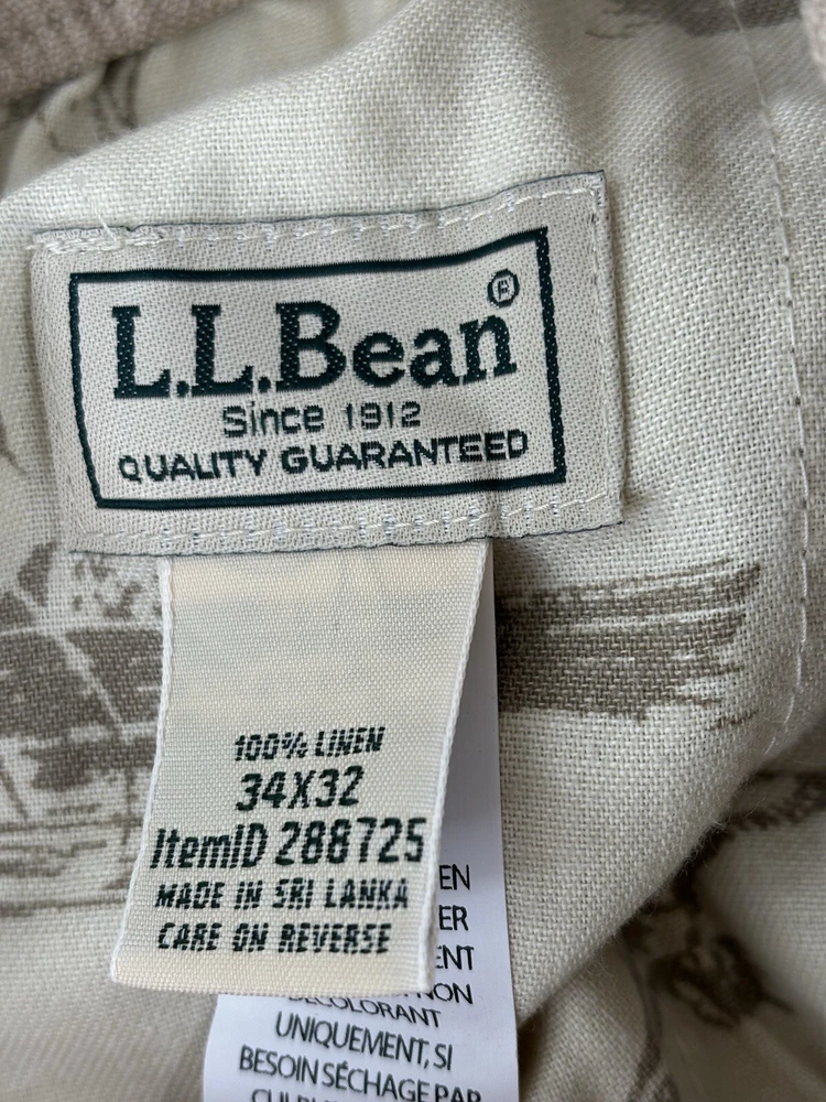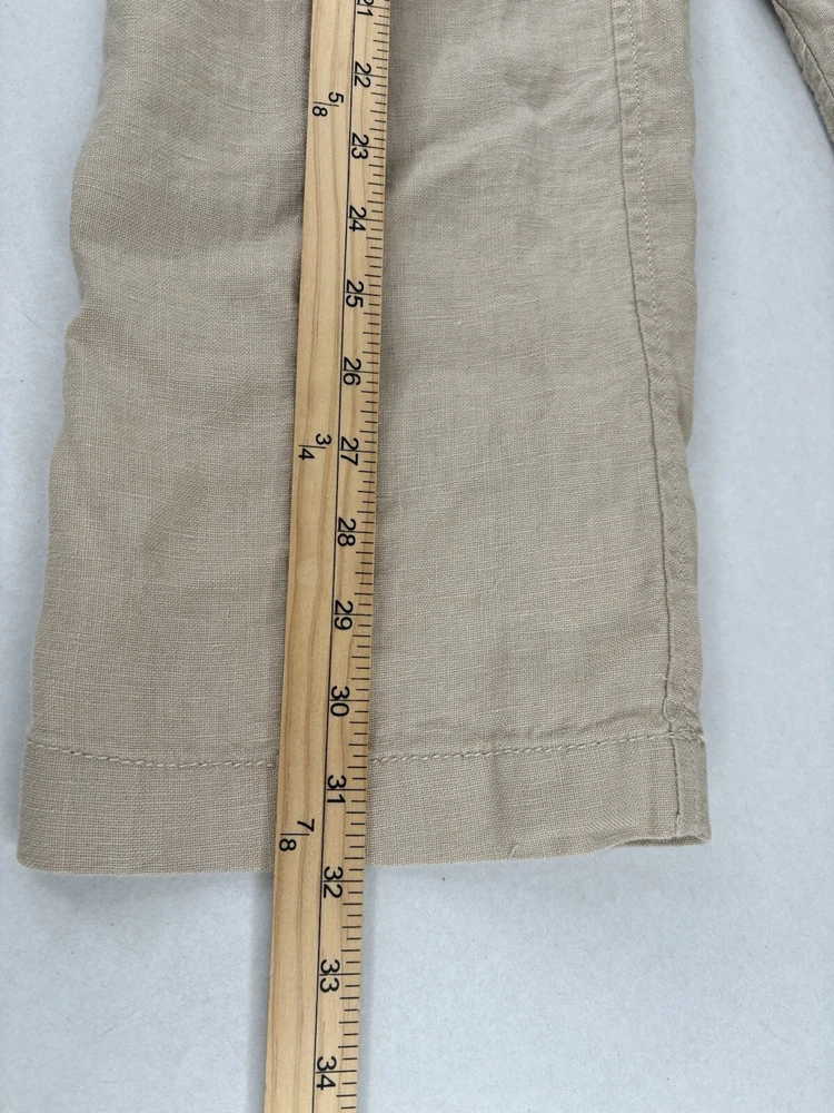 Ll bean linen pants drawstring elastic waist button/ zipper closure 33/32 measured good condition