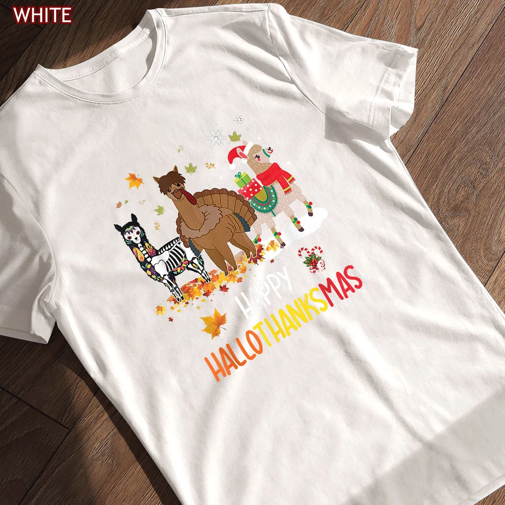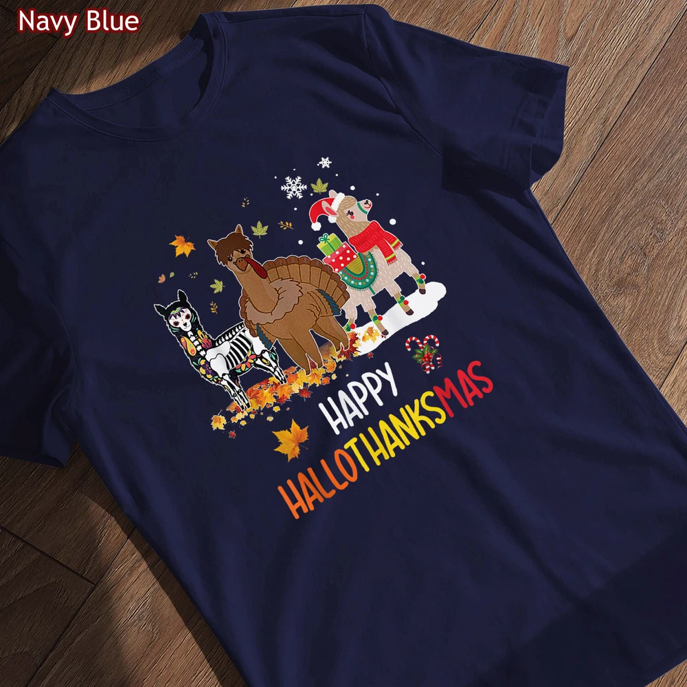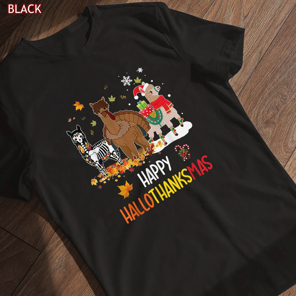 Llama Happy Hallothanksmas Tee Gift, Thanksgiving Halloween Christmas Shirt