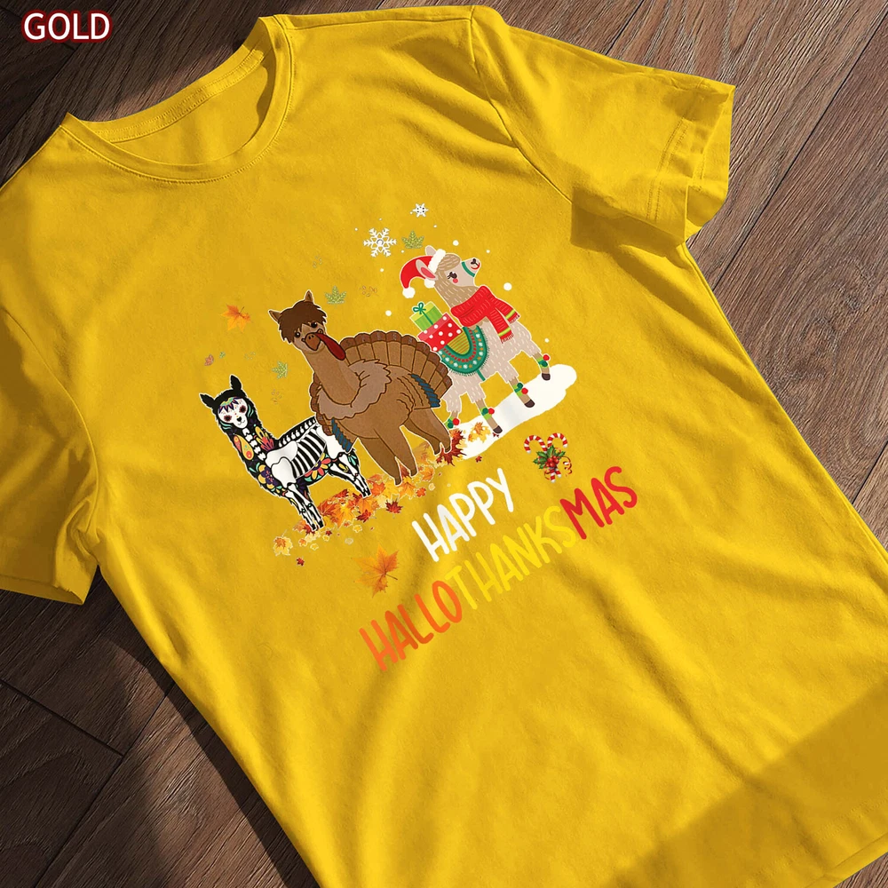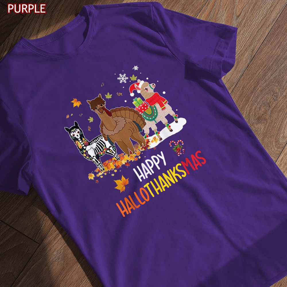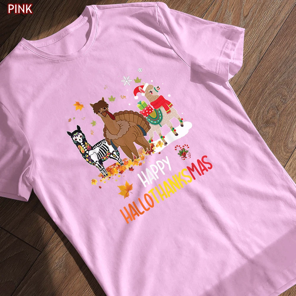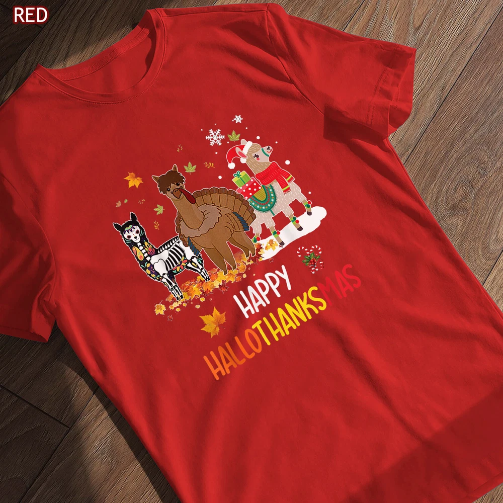Llama Happy Hallothanksmas Tee Gift, Thanksgiving Halloween Christmas Shirt