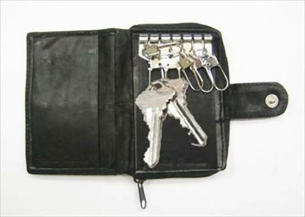 Llavero estuche cuero de vaca genuino para hombre llavero acordeón moneda identificación crédito aprox.